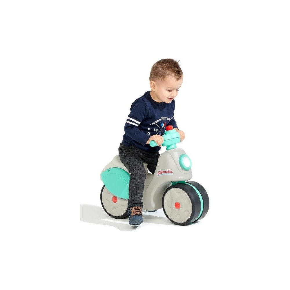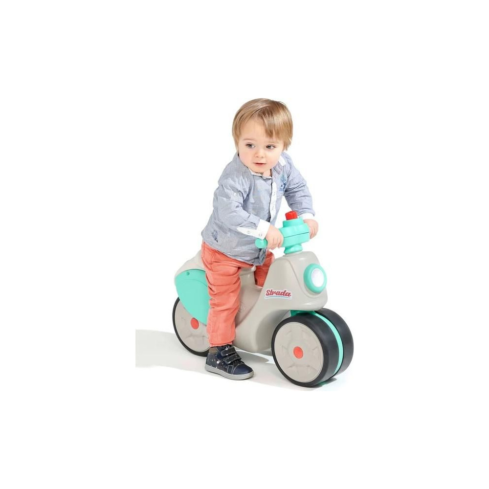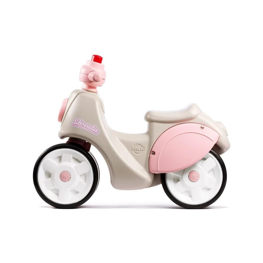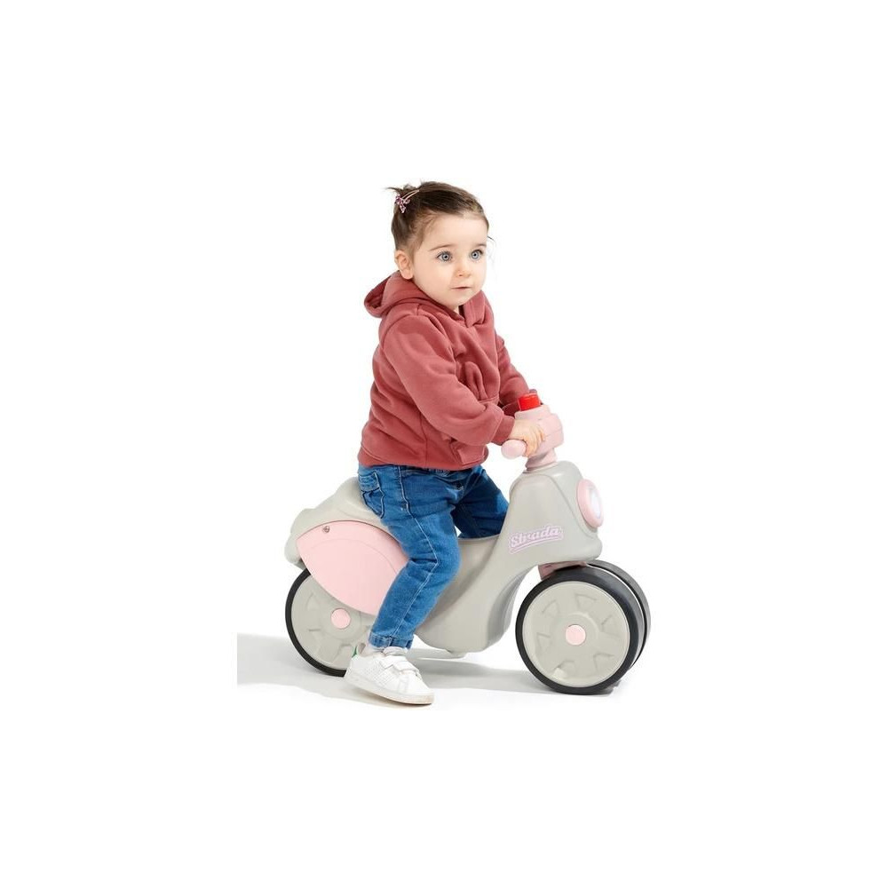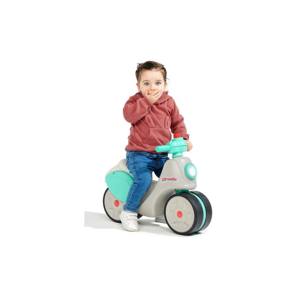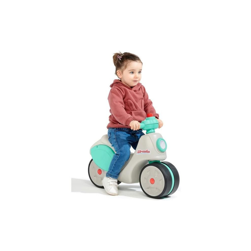 Strada gyermekkerékpár a francia FALK gyártótól - stílusos retro robogó formájában. Kiváló minőségű, tartós műanyagból készült, a gyermekek biztonságát szem előtt tartva. Az elasztomer bevonatnak köszönhetően a roller ellenállóbb a karcolásokkal szemben. Széles kerekek a stabilitás és az egyensúly fokozatos fejlesztése érdekében. Funkcionális kormány a vezetési készségek fejlesztéséhez. Funkcionális kürt a kormányon. Gyermekeknek 1 és 3 éves kor között.