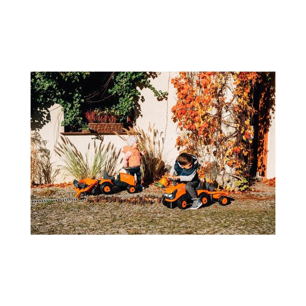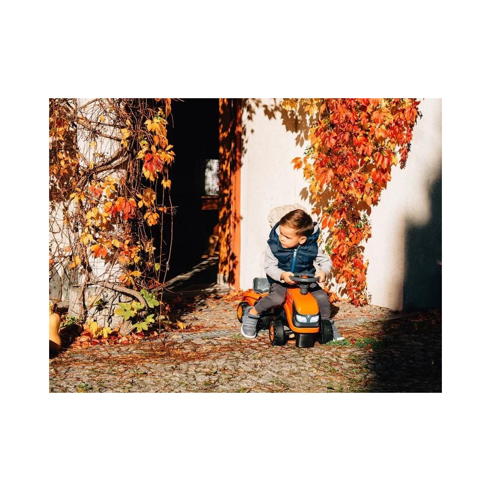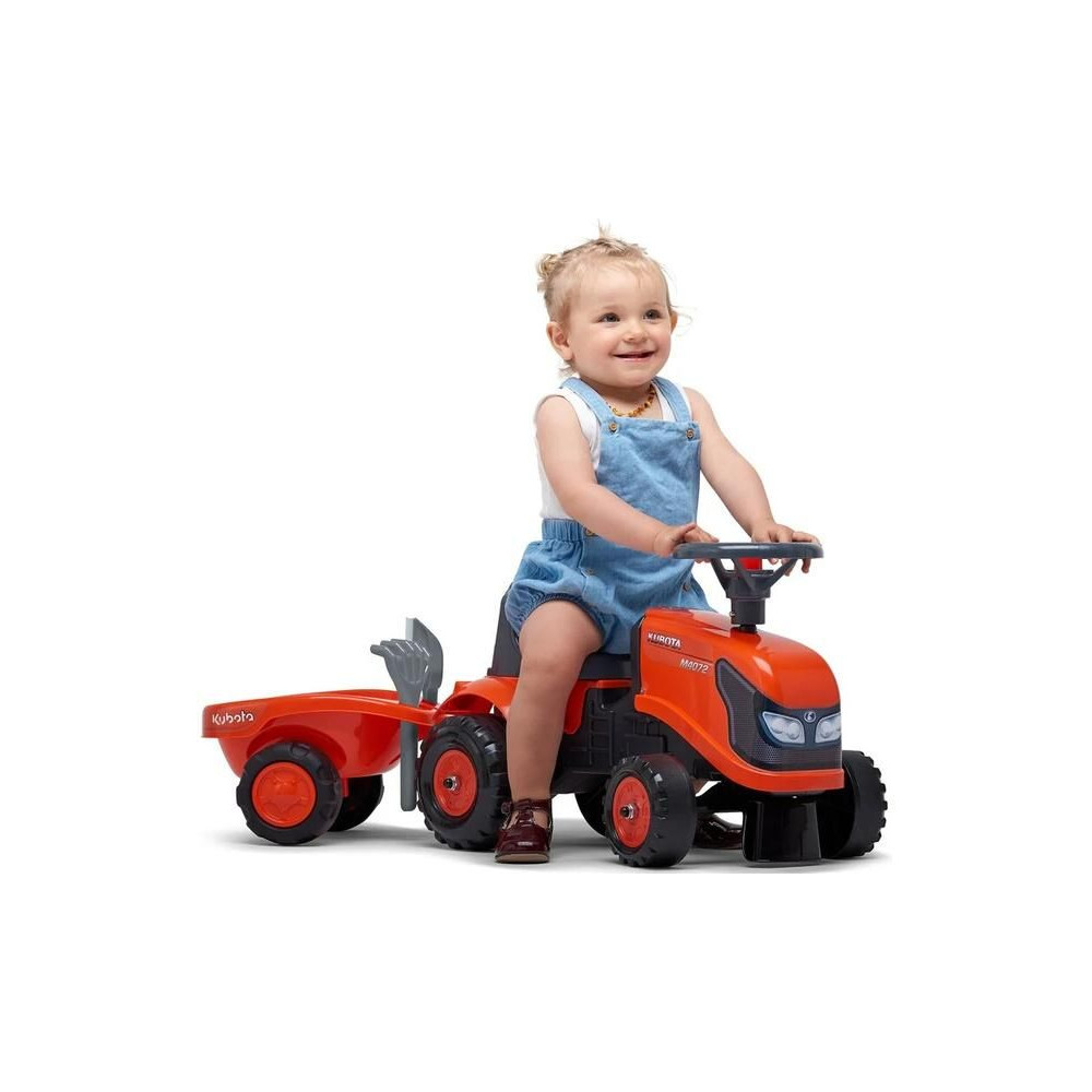 Falk Kubota gyermekkerékpár vonóhoroggal, lapáttal és gereblyével. Műanyag traktormásolat gyerekeknek. A robogó Franciaországban készült, kiváló minőségű, tartós műanyagból, a gyermekek biztonságát szem előtt tartva. A kormánykeréken található dudával van felszerelve. Gyermekeknek 1 és 3 éves kor között.