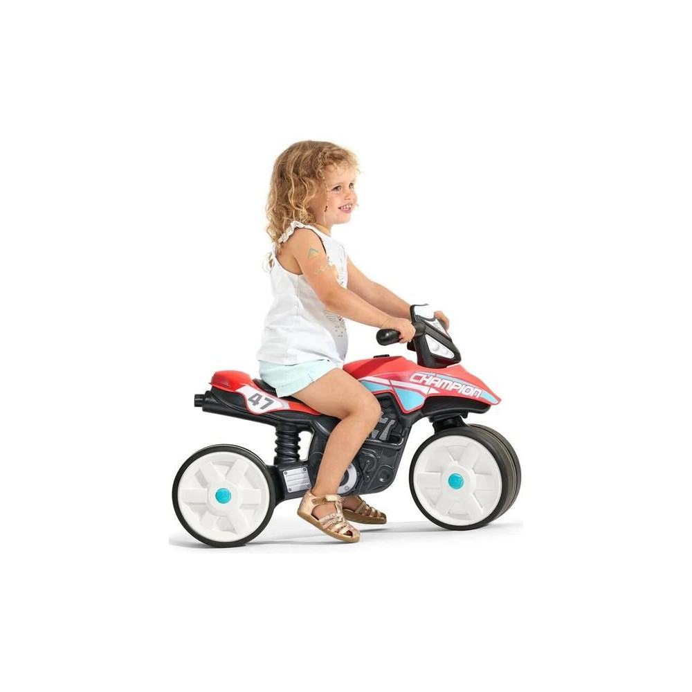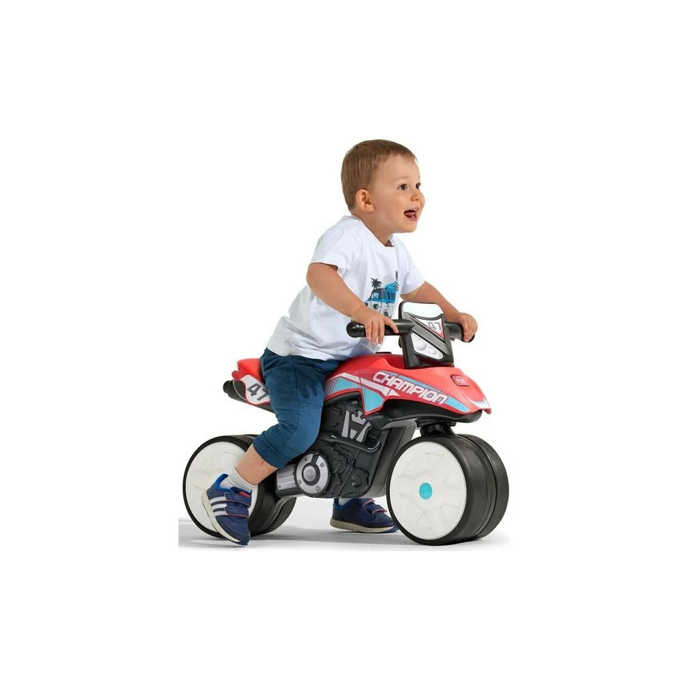 Champion gyermekkerékpár - a francia FALK gyártótól származó sportmotoros kerékpár formájában. Kiváló minőségű tartós műanyagból készült, tekintettel a gyermekek biztonságára. Széles kerekek a stabilitás és az egyensúly fokozatos fejlesztése érdekében. Funkcionális kormány. Gyermekeknek 1 és 3 éves kor között.