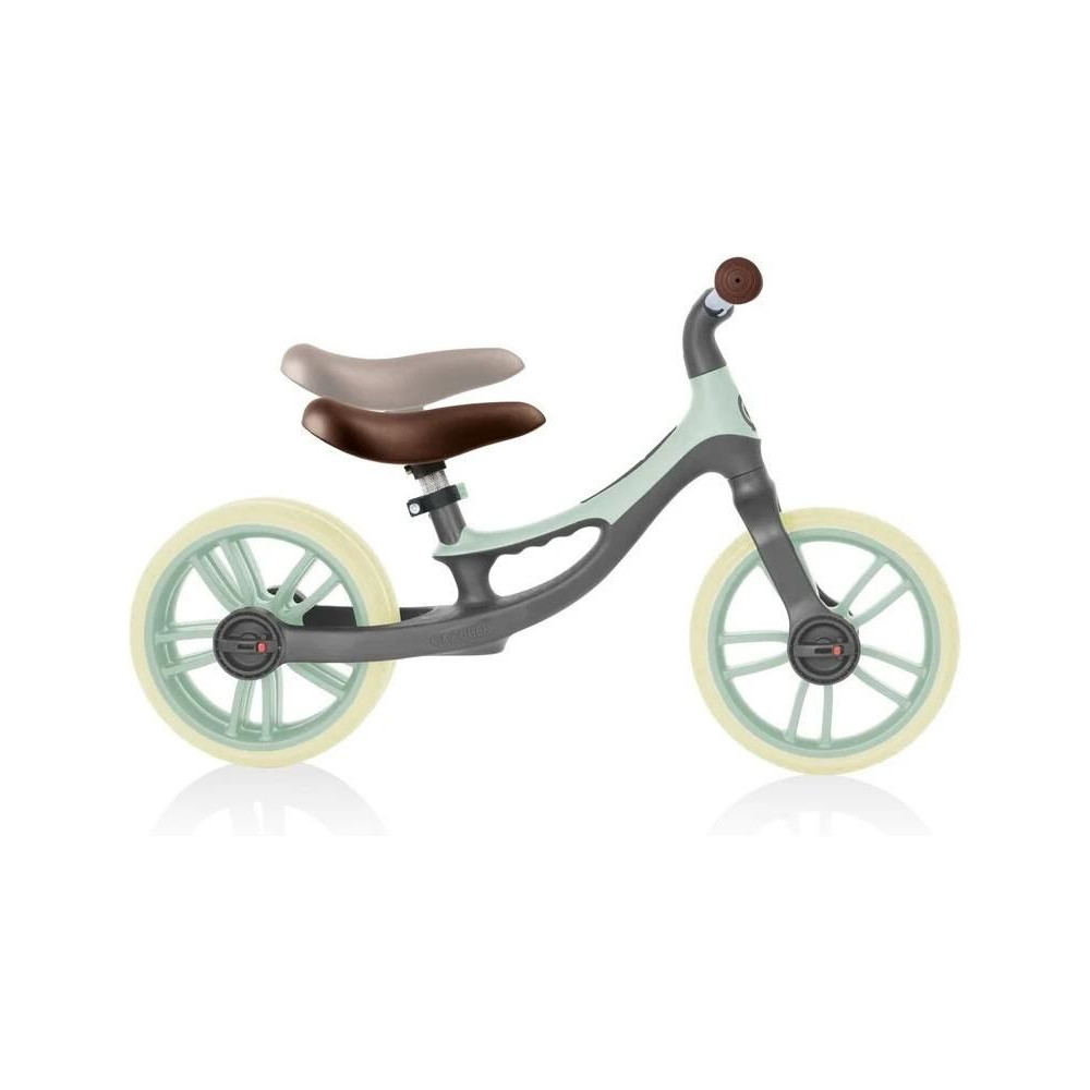 A Globber Go Bike Elite Duo gyermekkerékpár a vezetés és az egyensúlyozás megtanulásához. Dupla hátsó kerék a stabilitásért, TPE gumikerekek, integrált hordozófogantyú, állítható nyeregmagasság. Kényelmes nyereg és puha markolatok. Alkalmas 2-5 éves kortól.