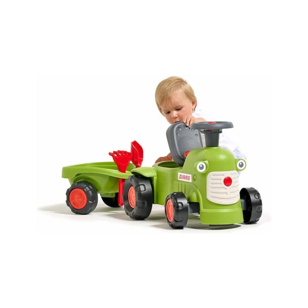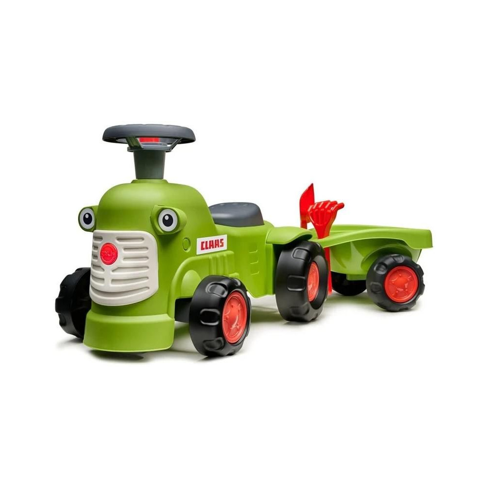 Gyermekkerékpár - Claas, a francia FALK gyártótól származó vontatóval. Kiváló minőségű és tartós műanyagból készült, tekintettel a gyermekek biztonságára. Nyitható ülés tárolóhellyel. Funkcionális kürt a kormánykeréken. Forgatható első tengelyes kormánykerék. Gyermekeknek 1 éves kortól.