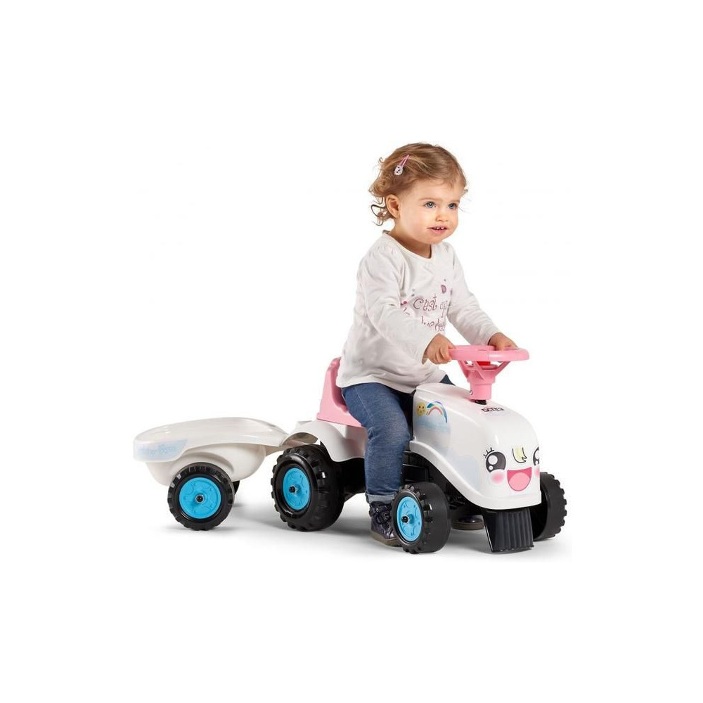 FALK - Rainbow Farm gyerek ugrálóvár, minőségi kidolgozás a francia játékgyártótól. Levehető burkolat a rakomány szállításához. Funkcionális kürt a kormányon. A csomag matricákat is tartalmaz. 1-3 éves gyermekek számára tervezve.