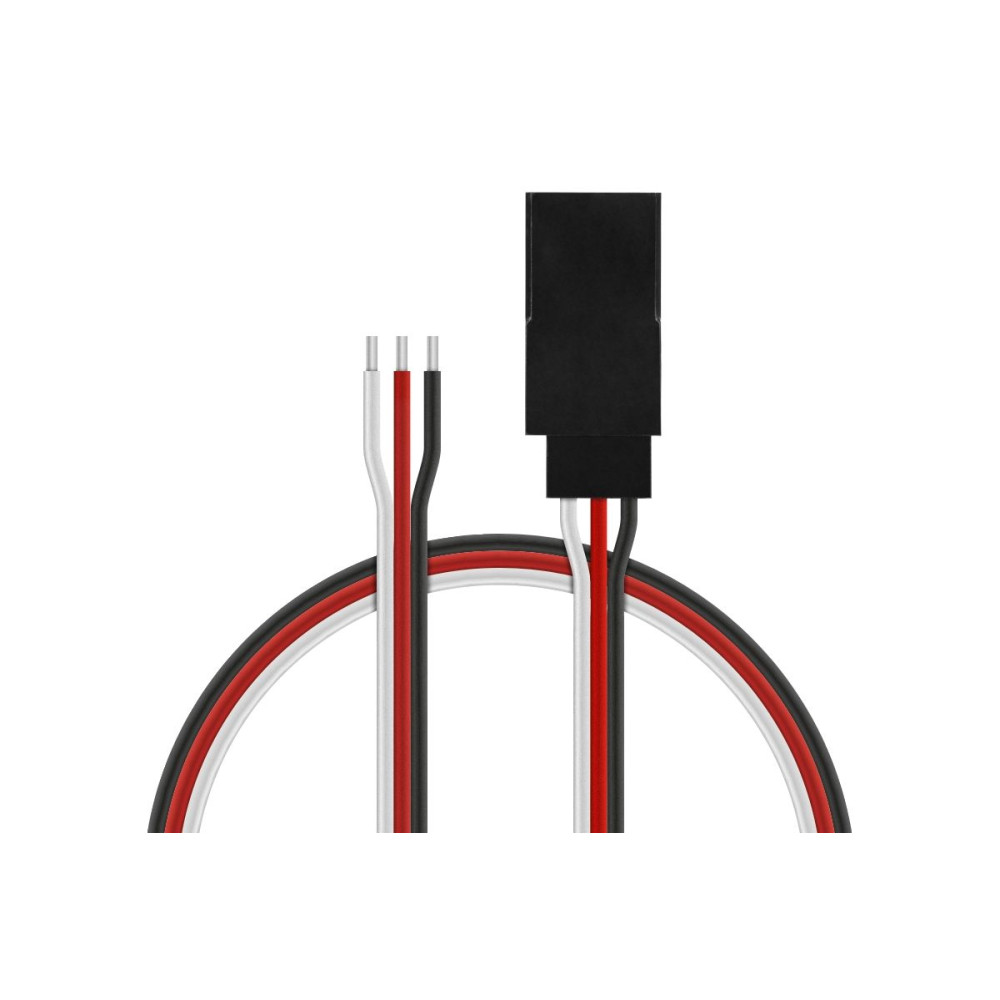 Lapos szervokábel Futaba csatlakozóval 150mm hosszú, PVC szigeteléssel, vezető keresztmetszete 0,25 mm2.