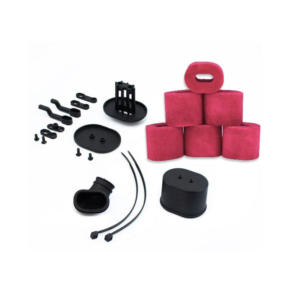 A szűrő 6 db olajozott, egyrétegű habszivacs betétet tartalmaz, és egy előre kijelölt lyukakkal ellátott szűrőfedelet, amely esős napokon is használható.