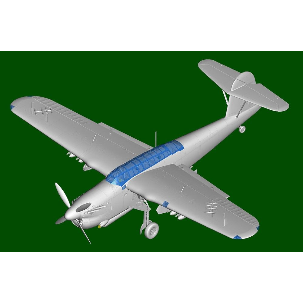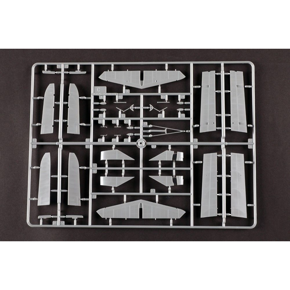 Ez a Trumpeter modell a gép egyedi sziluettjét ragadja meg a részletesen kidolgozott törzzsel és szárnyakkal, amelyek finoman vésett panelvonalakat viselnek magukon.