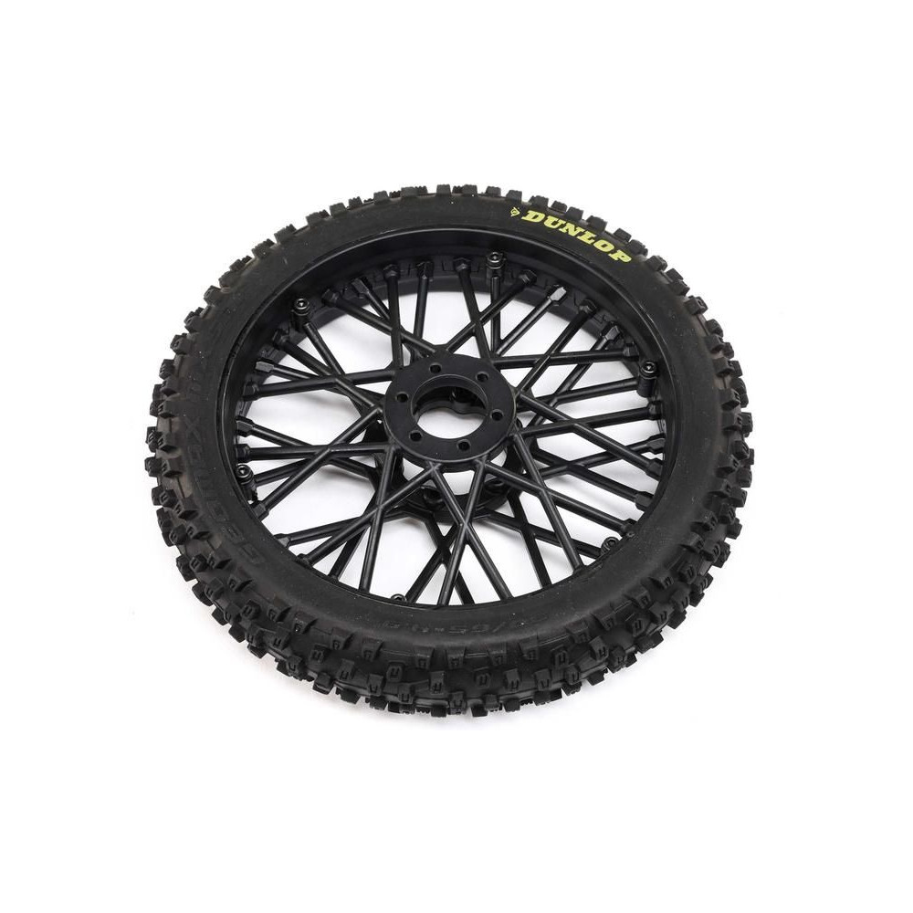 Alkatrész Losi 1:4 Promoto-MX RC-modell motorkerékpárhoz: kerék Dunlop MX53 első gumival, fekete tárcsával