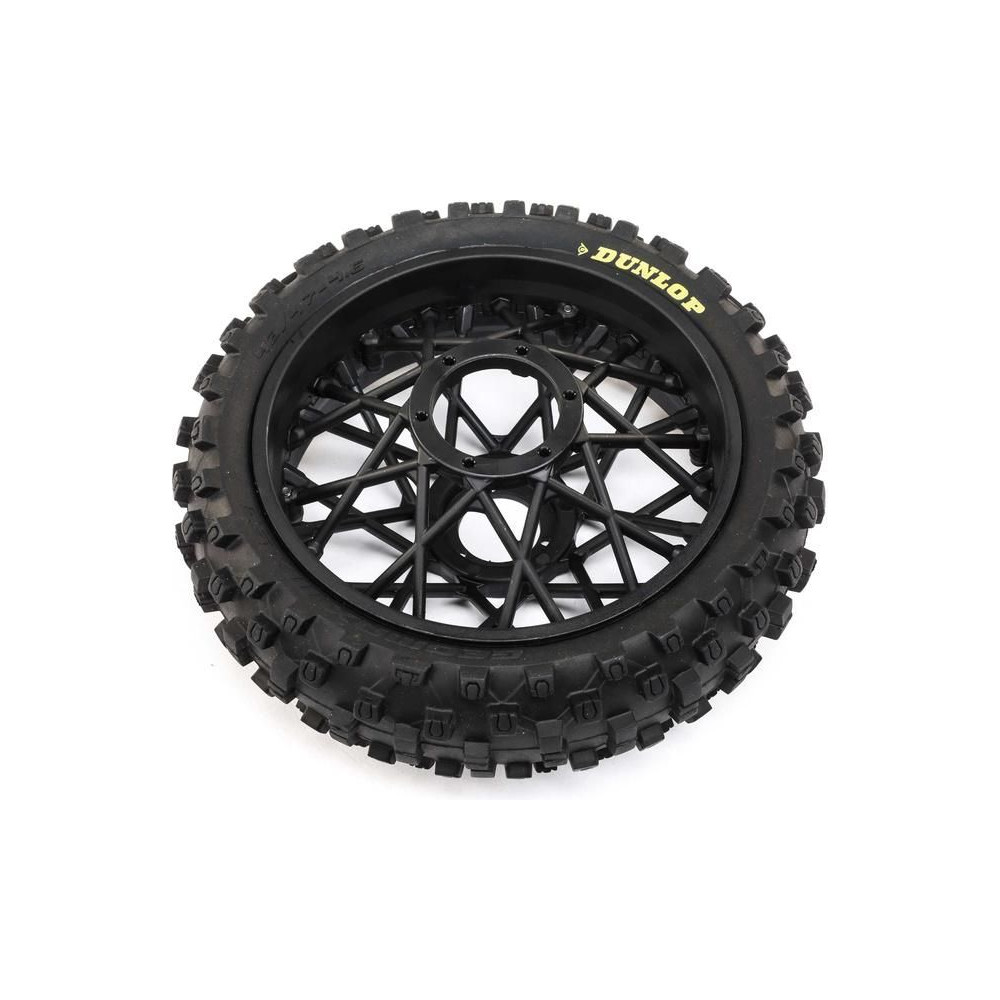 Alkatrész Losi 1:4 Promoto-MX RC-modell motorkerékpárhoz: kerék Dunlop MX53 hátsó gumival, fekete tárcsával