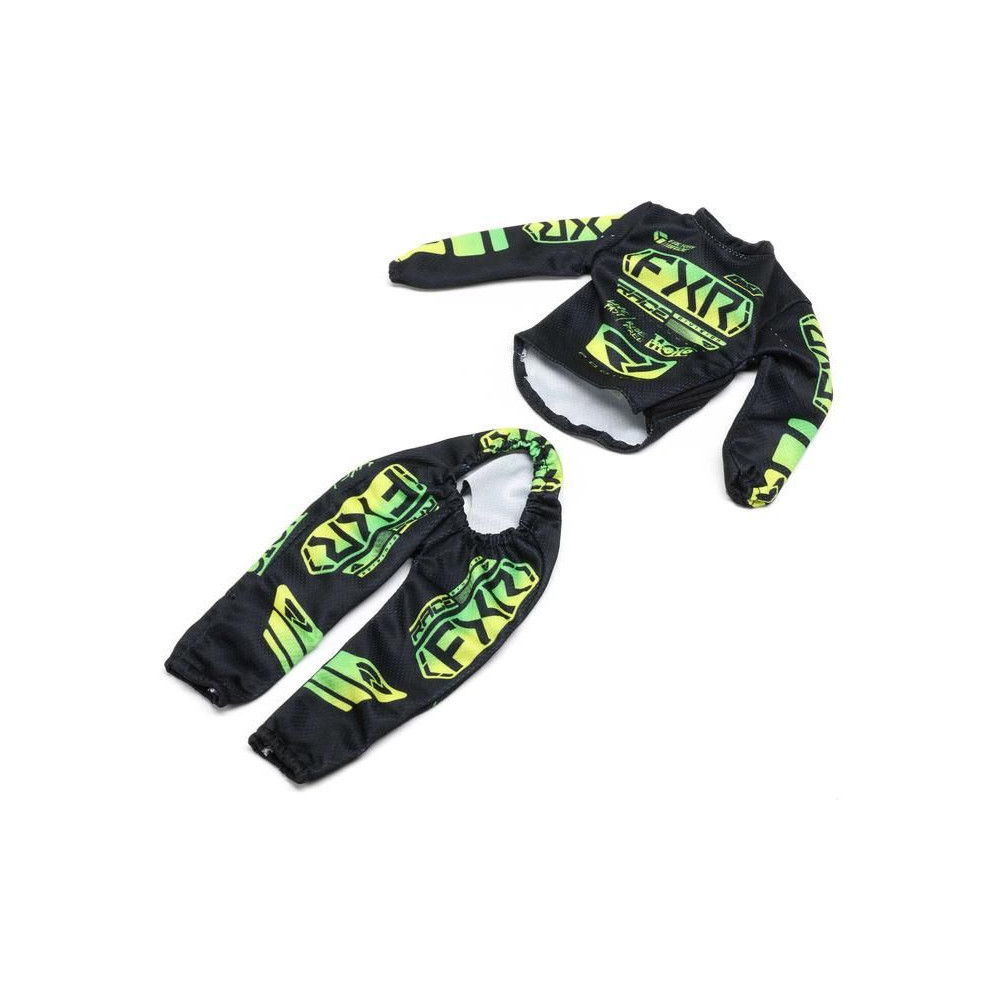Alkatrész a Moto SM motorkerékpár Losi 1:4 RC modelljéhez: FXR fekete Podium Gladiator vezetői ruházat.