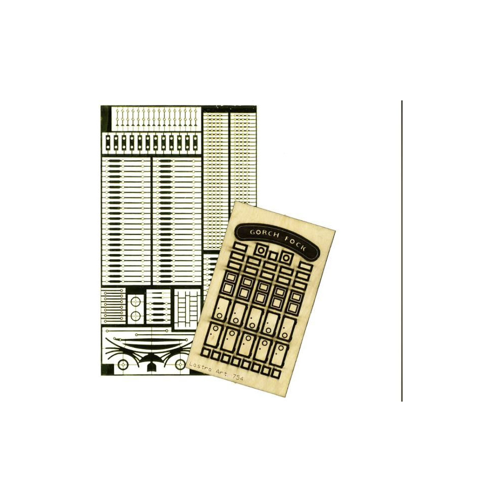 Ajánlott tartozékok a Mantua Model Gorch Fock 1:90 készlethez: fotómaratott sárgaréz alkatrészek.