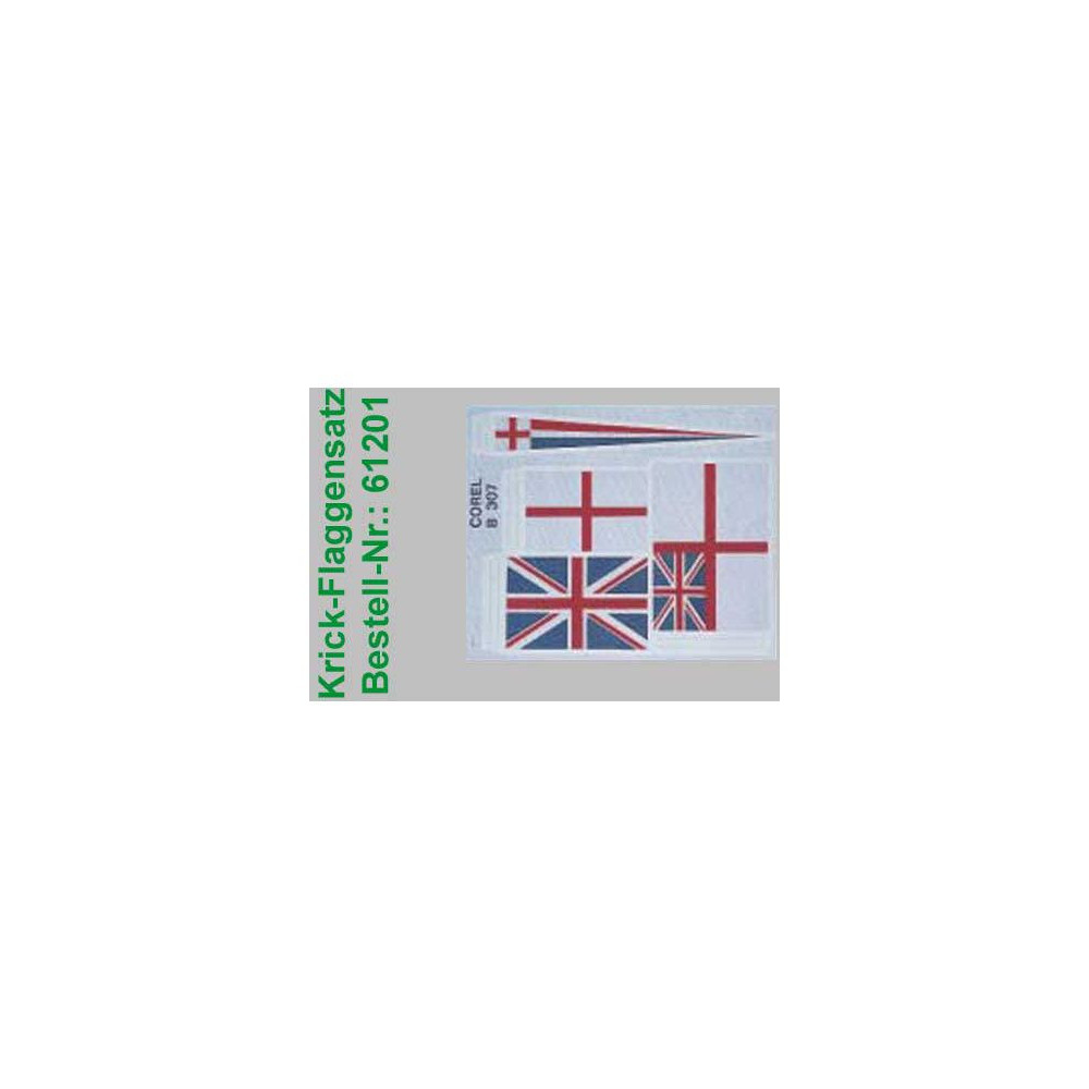 Krick hajó készlet tartozékok: Victory/Unic.Endea zászló készlet. Méretek: keskeny 145mm, egyéb 92x64mm, 78x52mm, 67x44mm.