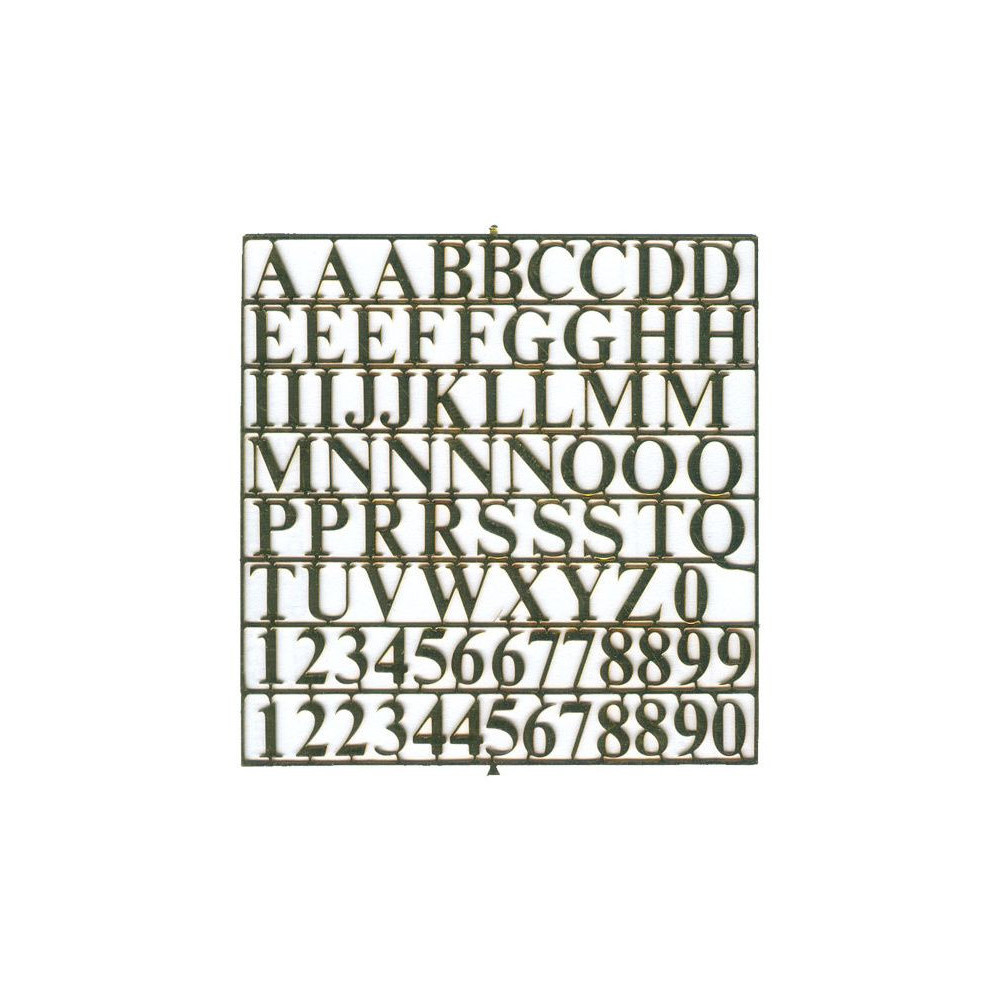 Mock-up tartozékok Krick hajómodellekhez: betűkészlet sárgaréz 6mm. A betűk 6mm magasak és 0,3mm vastag sárgaréz lemezből vannak marva. Az ábécében való gyakoriságtól függően egyes betűk többször is megjelennek.