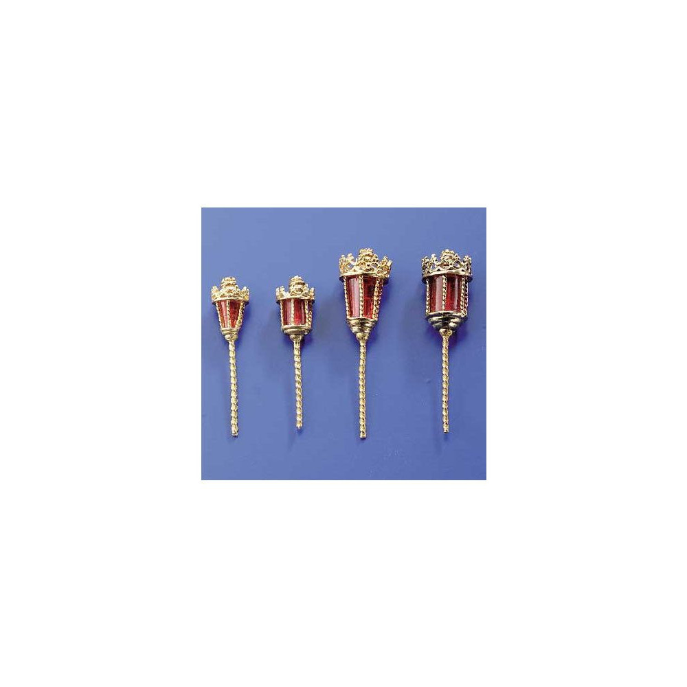 Mock-up tartozékok Krick hajómodellekhez: történelmi lámpa másolata, kúpos lámpa, lámpa magassága 22mm, átmérője 12mm, teljes magassága 54mm. Teljesen összeszerelve, a betét átlátszó piros műanyagból, a keret aranyszínű fémből készült. Nem lehet megvilágítani.