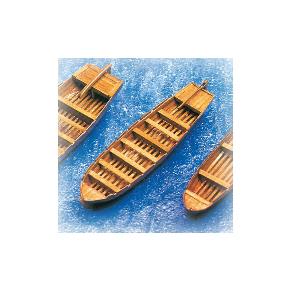 Krick: Horgászcsónak készlet, méretek 120x31x19mm. Az egyszerű készlet lézervágott rétegelt lemez válaszfalakat, korlátkészletet és építési terveket tartalmaz.