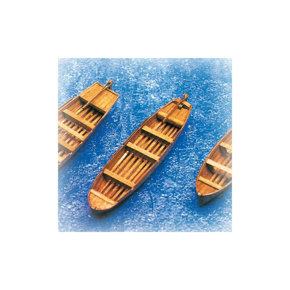 Krick: Horgászcsónak készlet, méretek 108x26x18mm. Az egyszerű készlet lézervágott rétegelt lemez válaszfalakat, korlátkészletet és építési terveket tartalmaz.