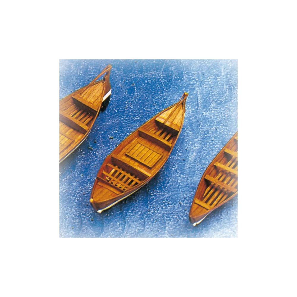 Fa hajómodell készlet - Motoros kabinos hajó, méretek 104x32x26mm. Az egyszerű készlet lézervágott rétegelt lemez válaszfalakat, korlátkészletet és építési terveket tartalmaz.