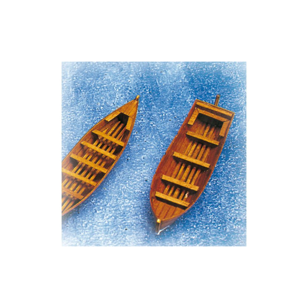 Fa csónak készlet kormánylapáttal, méretek 103x28x22mm. Az egyszerű készlet lézervágott rétegelt lemez válaszfalakat, korlátkészletet és építési terveket tartalmaz.