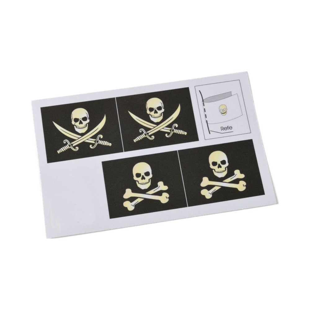 Öntapadós anyagra nyomtatott kalózzászló (2 db) A zászló mérete kb. 55x43 mm.