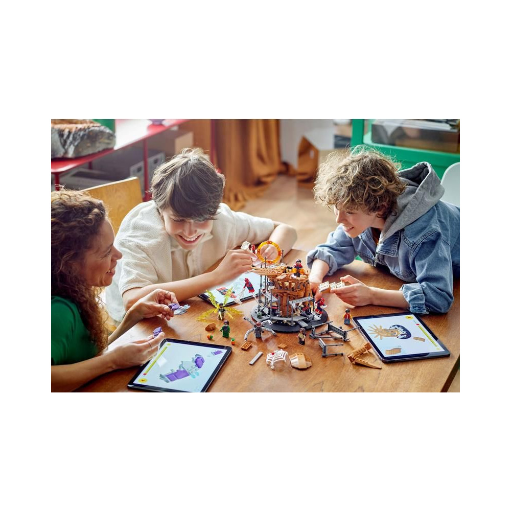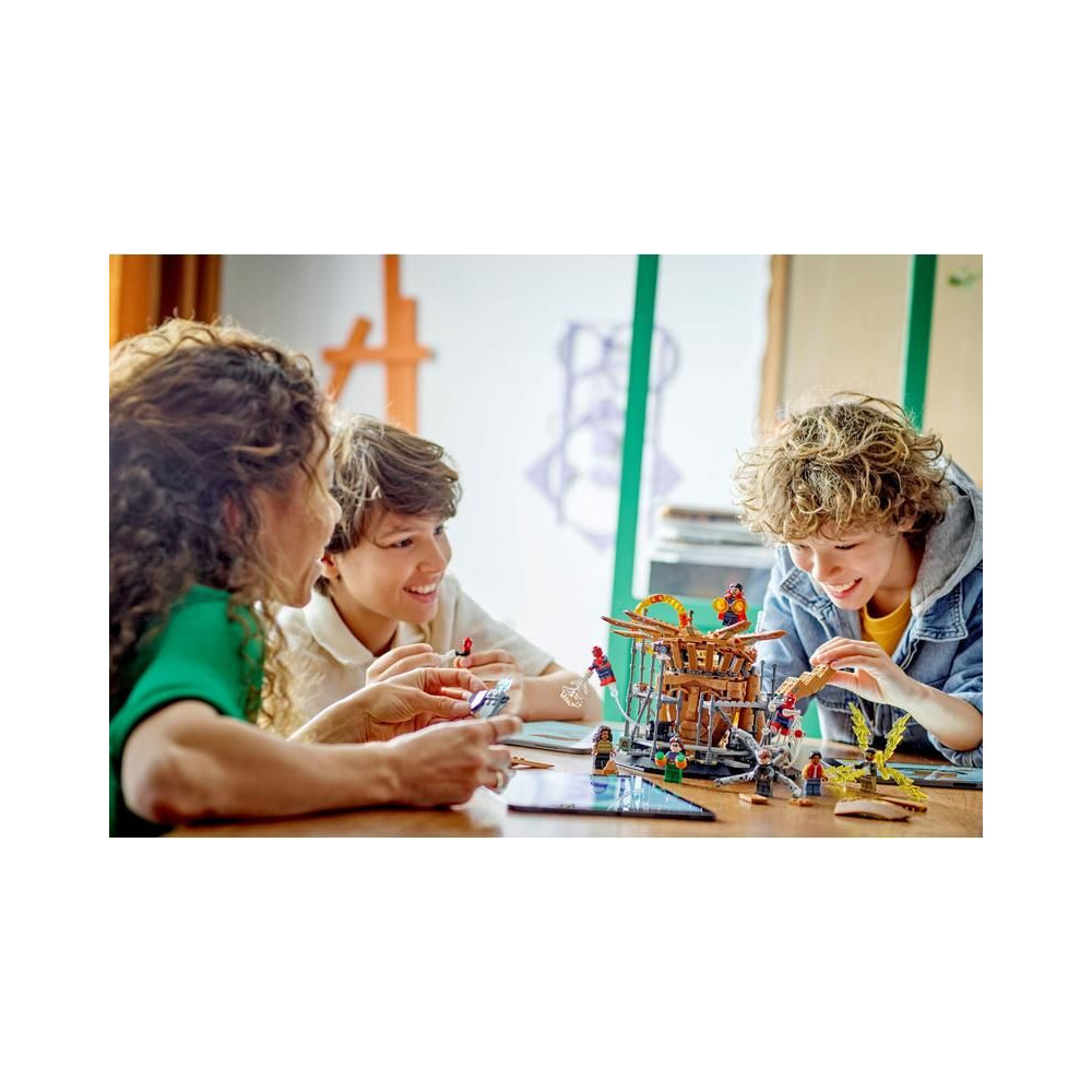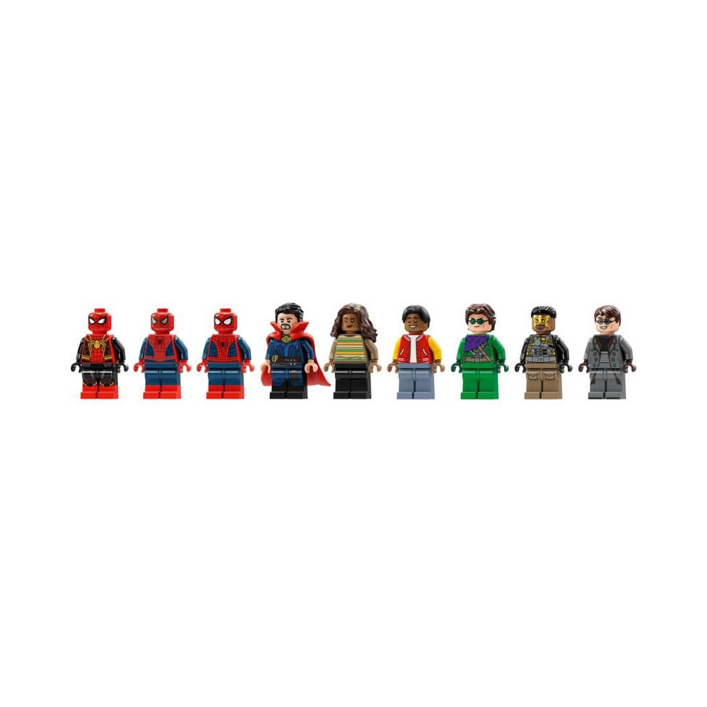Ez a 360°-os építőjáték a LEGO Marvel minifigurák elképesztő keverékét tartalmazza, köztük Pókember 3 változatát: a barátságos szomszéd Pókembert (Tobey Maguire), a Csodálatos Pókembert (Andrew Garfield) és Pókembert (Tom Holland). További minifigurák: Electro, Doctor Strange, a Zöld Manó, Ned, MJ és Doc Ock. A csomag számos funkciót tartalmaz a maximális játék- és megjelenítési lehetőségek érdekében, például 3 minifigura bázist a levegőben történő akcióhoz, egy visszahúzható tetőt, amely felfedi Homokember kezét, egy felpattintható hátsó portál bejáratot és egy finom hálót, amelybe a minifigurákat be lehet csomagolni. Az építők egy extra adag digitális szórakozást is élvezhetnek a szórakoztató és intuitív LEGO Builder alkalmazással, ahol 3D-ben zoomolhatják és forgathatják a modellt, és nyomon követhetik a fejlődésüket.