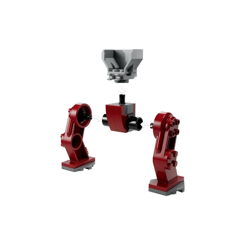 - Akciócsata - A Hulkbuster robot mozgatható, és tartalmaz egy ülést a Vasember minifigurának. A repülőgéphez egy korongkilövő korong van csatlakoztatva, és egy ülés Thanos minifigurája számára.