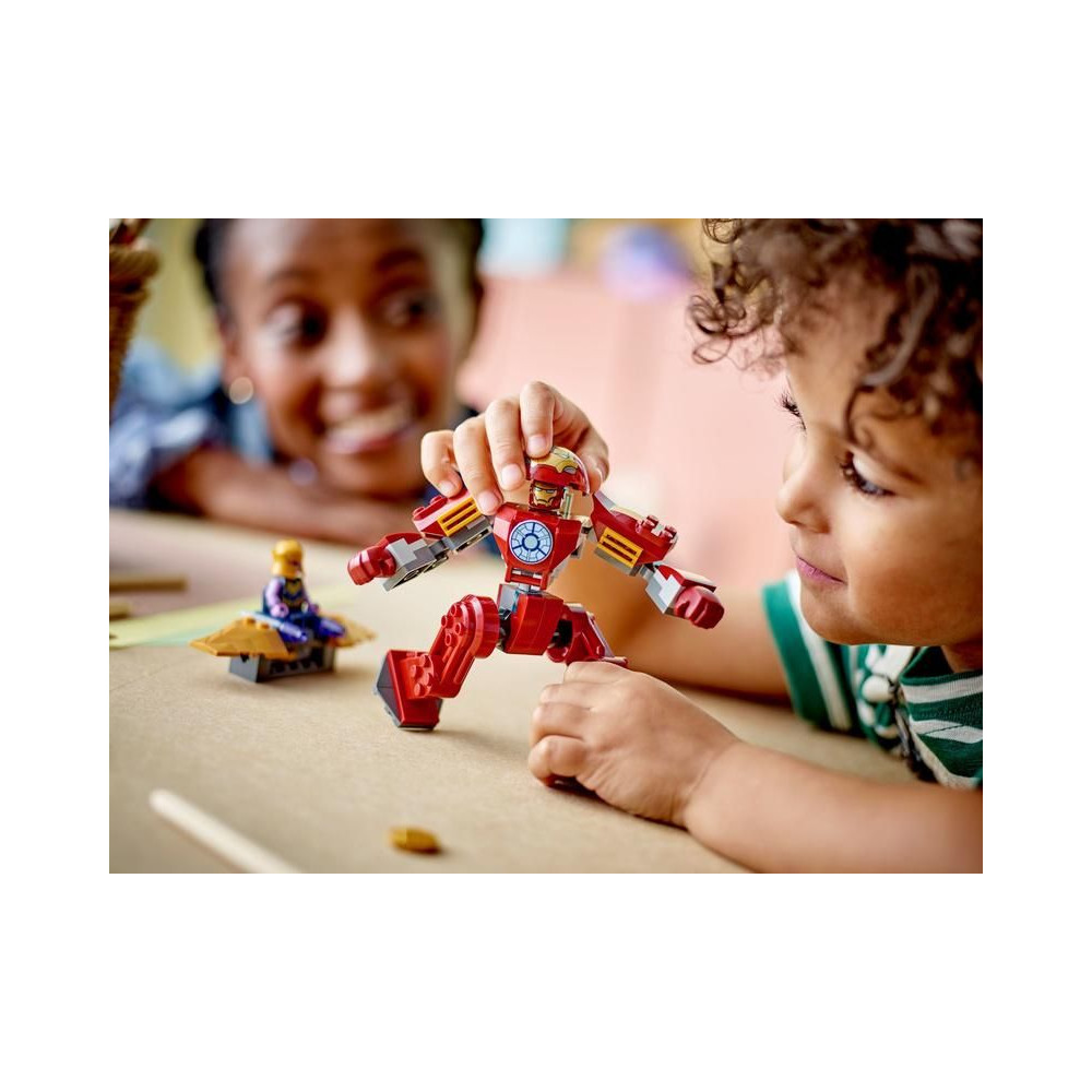 A LEGO® Marvel Iron Man Hulkbuster vs. Thanos építőkészlet a 4 éves és annál idősebb gyerekeknek klasszikus szuperhős akciókat mutat be.