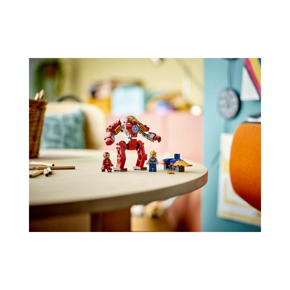 A Bosszúállók: Végtelen háború által inspirált készlet a szuperhős Vasember és robotja, valamint a főgonosz Thanos és repülőgépe összecsapását ábrázolja. A Hulkbuster robot mozgatható, és tartalmaz egy ülést a Vasember minifigurának. A repülőgéphez tartozik egy korongkilövő és egy ülés Thanos minifigurája számára. A csomag minden egyes zacskója egy teljes modellhez és figurához szükséges téglákat tartalmaz, amelyeket a gyerekek azonnal összerakhatnak játékhoz. A színes, mesével kísért útmutató útmutatóként szolgálnak az építéshez és a játékhoz, a robot lábaihoz pedig 2 kezdő kocka teszi még egyszerűbbé az építkezést. A még szórakoztatóbb digitális építés érdekében a szórakoztató és intuitív LEGO Builder alkalmazással az építők ráközelíthetnek, 3D-ben forgathatják a modelleket, és nyomon követhetik a haladást.