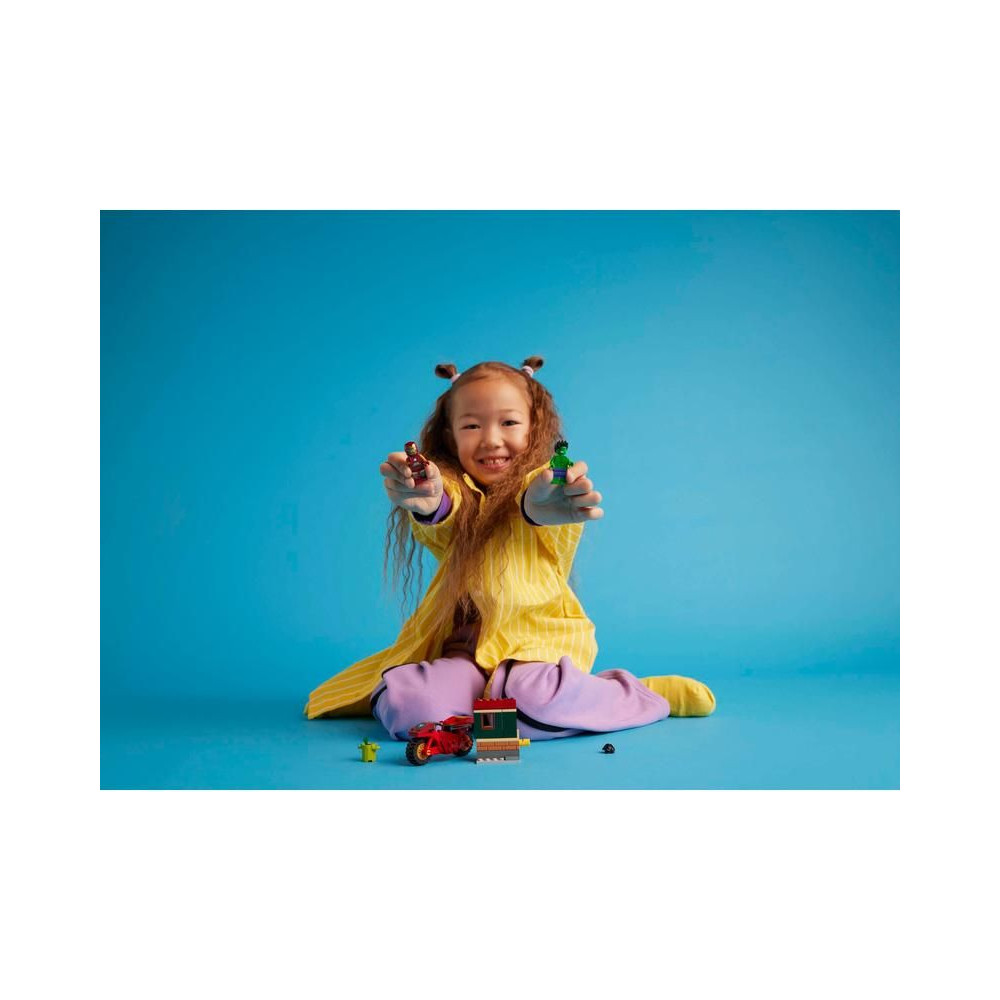 A LEGO Marvel készlet Vasember és a hihetetlen Hulk minifiguráit, valamint Vasember építhető motorkerékpárját és építhető házát tartalmazza. A gyerekek aktiválnak egy olyan funkciót, amely összeomlasztja az épületet (ami sokszor előfordul, ha Hulk a közelben van!), majd újraépíti azt, éppen időben Hulk következő robbanásához. A készlet tartalmaz egy kezdő blokkot egy járművázzal, amely segít a gyerekeknek az építkezésben. Intuitív utasításokat találsz a színes képes útmutatóban. A még több digitális szórakozás érdekében az építők az intuitív LEGO Builder alkalmazással zoomolhatják és forgathatják a modelleket.