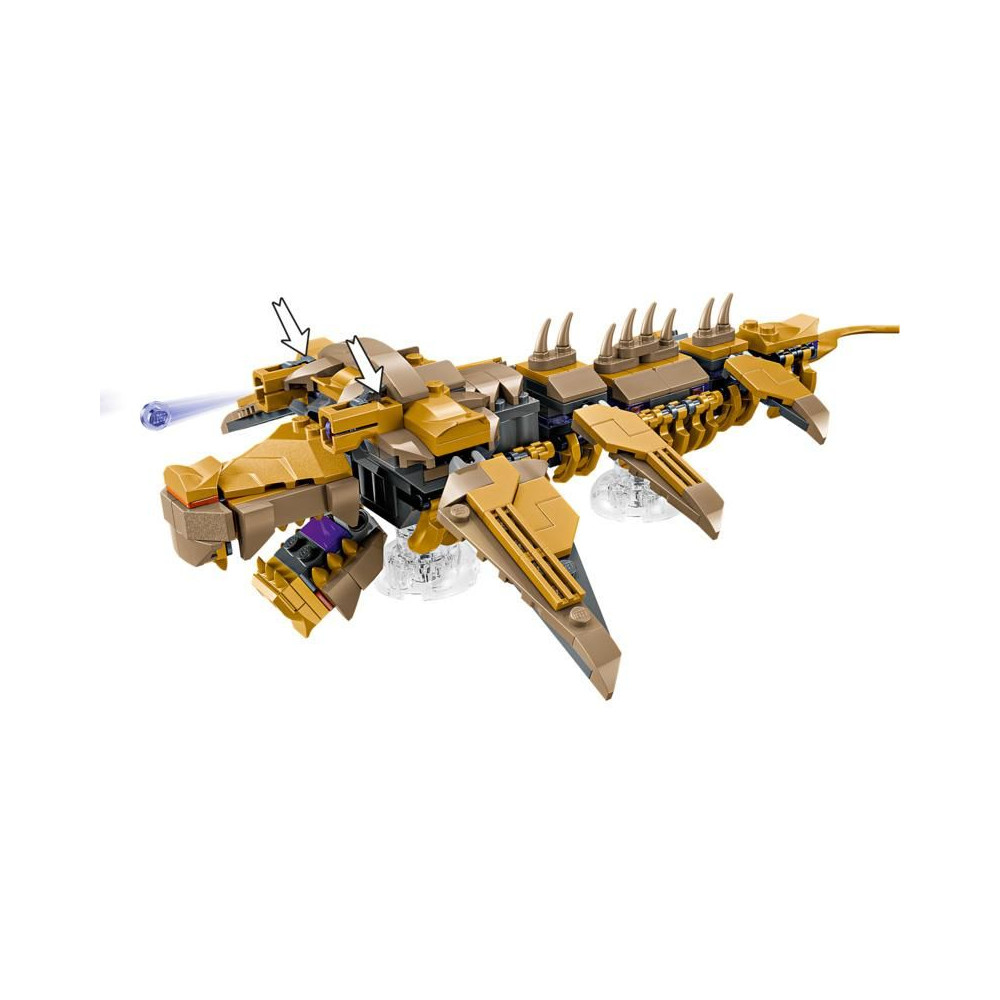 - LEGO® Marvel akciófigura - Az építhető "légibálna" Leviatán 6 mozgatható uszonyával, nyitható szájjal, enyhén oldalra fordítható fejjel, 2 kilövővel és átlátszó állvánnyal rendelkezik.