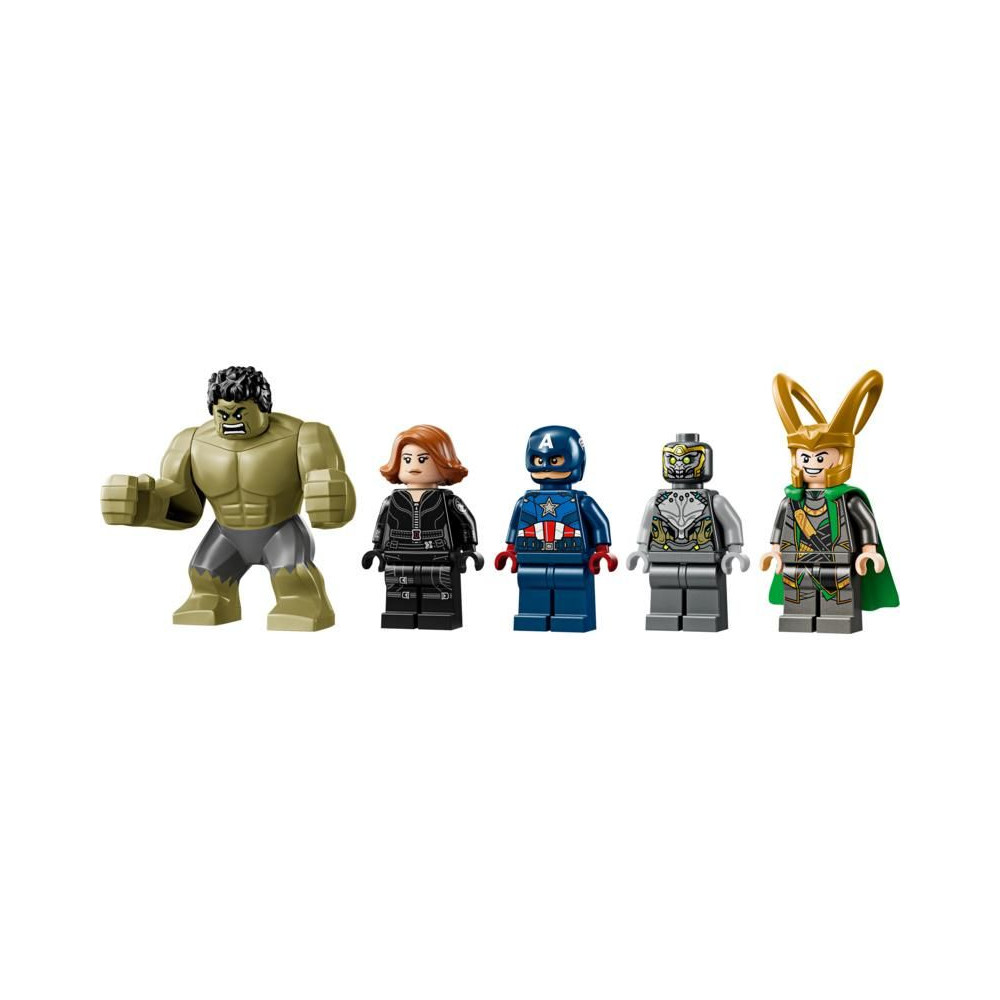 - Marvel karakterek - Hulk figura és 4 minifigura: Amerika kapitány pajzzsal, Fekete özvegy mesterlövész puskával, Loki köpennyel és sisakkal, és Chitauri harcos lézerpisztollyal.