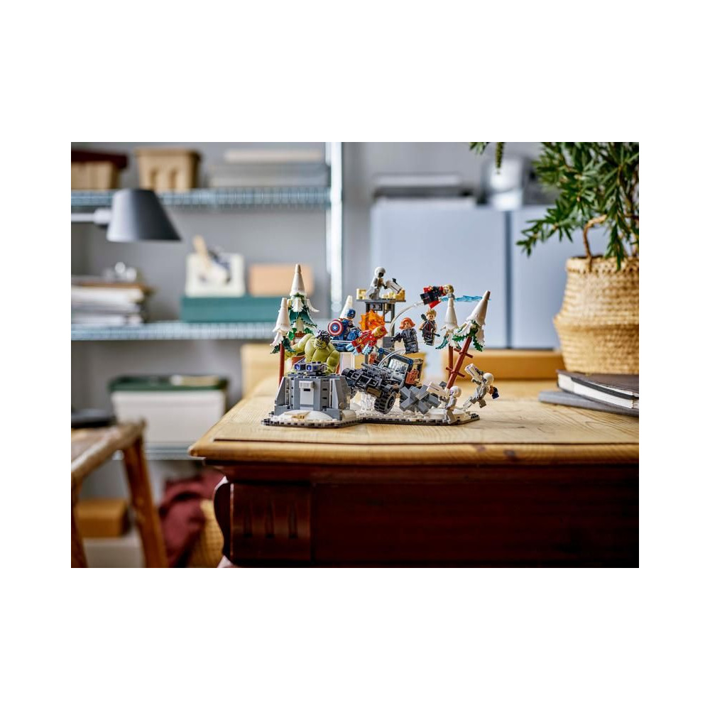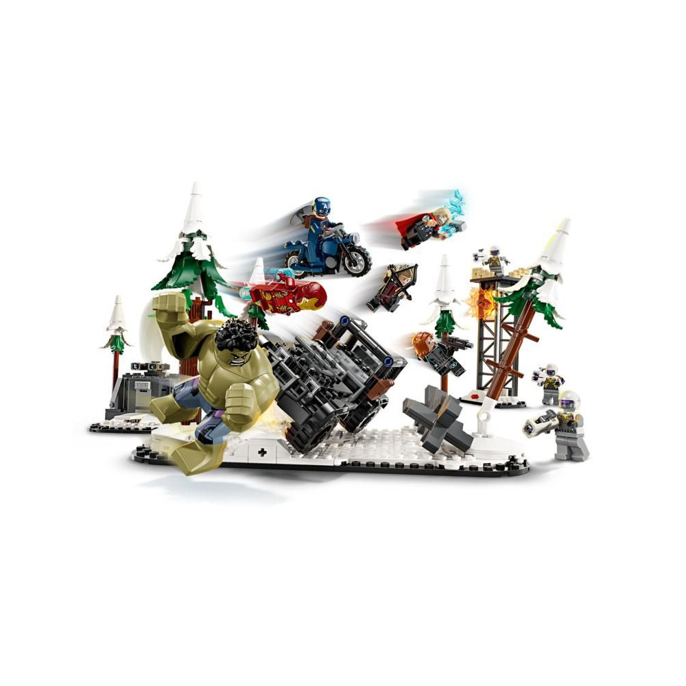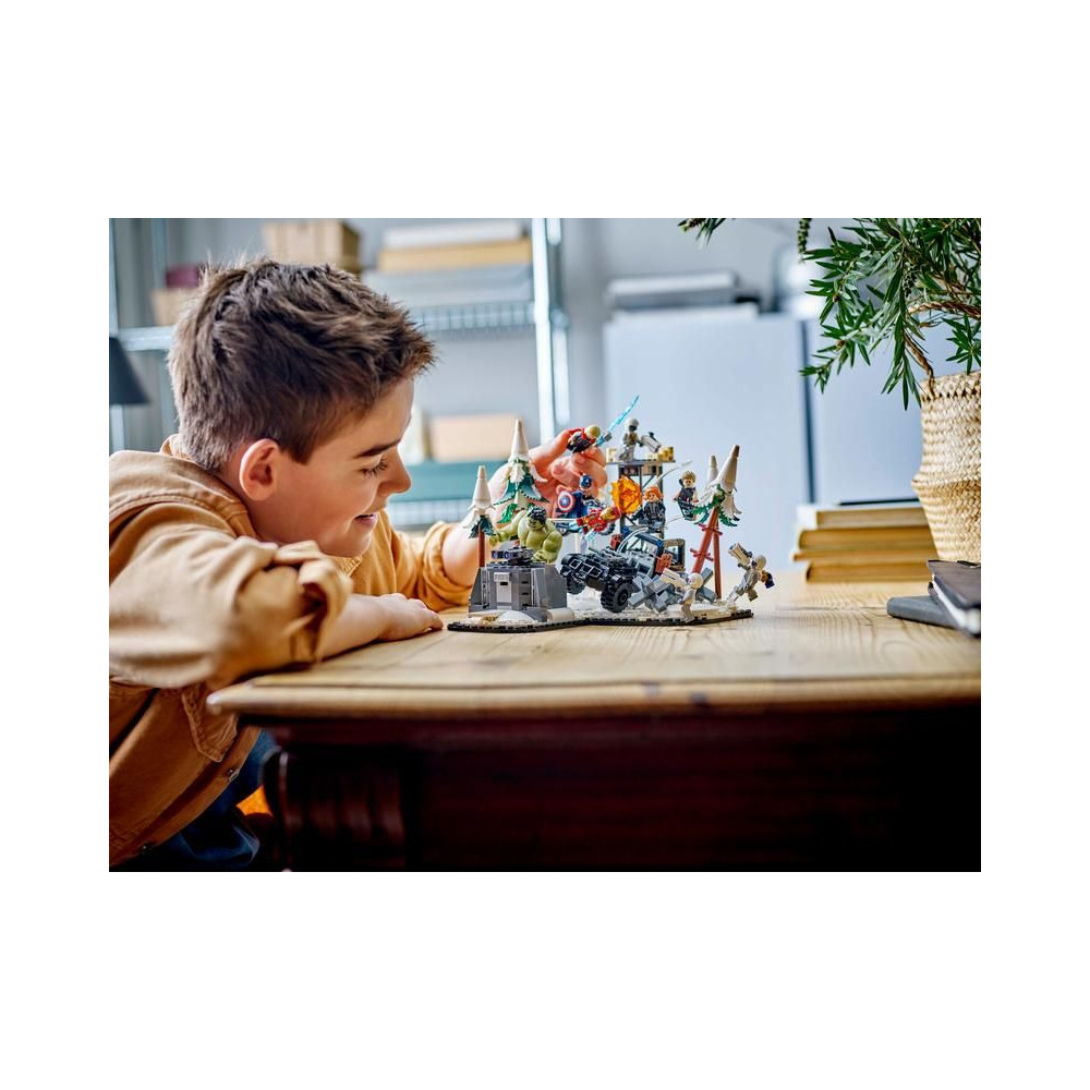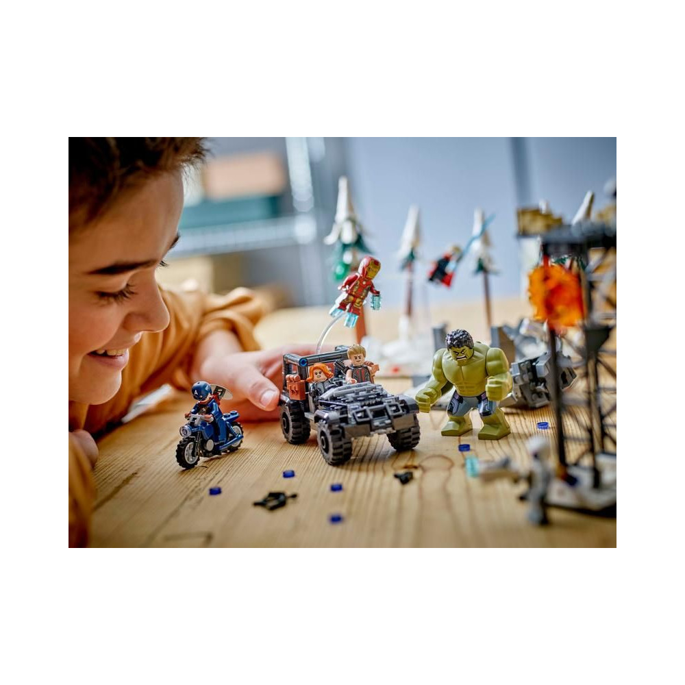 A készlet a Marvel Studios Bosszúállók: Ultron kora című sikerfilmjének nagy csatajelenetén alapul. A sokoldalú készlet 5 Bosszúállók minifigurát - Sólyomszem, Fekete Özvegy, Amerika Kapitány, Vasember és Thor -, egy nagyméretű Hulk figurát és 3 Hydra katona minifigurát tartalmaz. A készletet alkotó öt (5) modul konfigurálható a végtelen játéklehetőségek érdekében, vagy kombinálható egy lenyűgöző kiállítási darab létrehozásához. Számos fegyvert és kiegészítőt tartalmaz a fantáziadús játékhoz, valamint egy terepjárót. Az intuitív LEGO Builder alkalmazással a gyerekek ráközelíthetnek a modellekre, 3D-ben forgathatják azokat, elmenthetik az építményeket és nyomon követhetik a haladást.