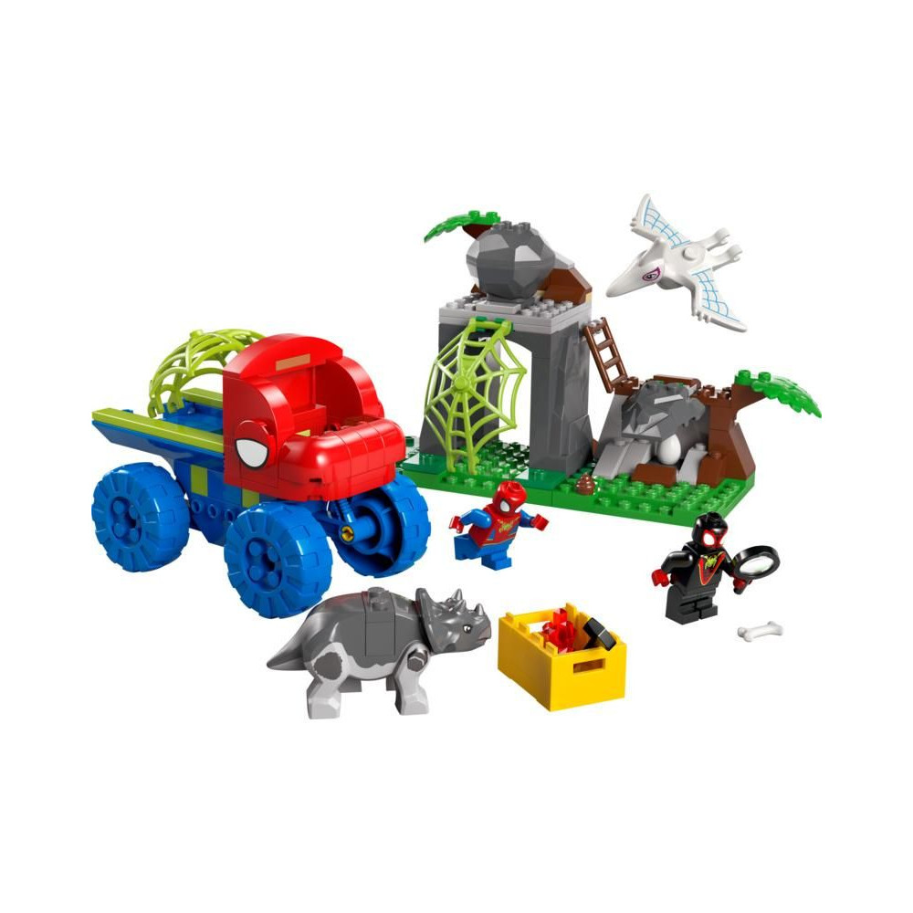 - Dinoszaurusz kaland összerakható figurákkal - A gyerekek csatlakoznak Pókemberhez, Miles "Spin" Moraleshez, Szellemszauruszhoz és Dino-Rinórszarvúhoz Pókember teherautójában, amelynek hátuljára egy nagy háló van rögzítve.