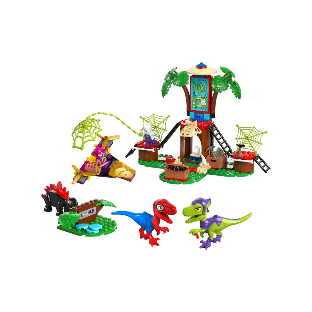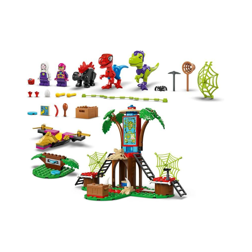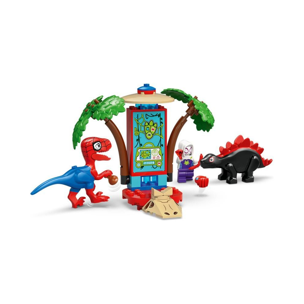 A faháznak 3 platformja van, köztük az egyiken egy nagy képernyő található, amelyen a csapat küldetése látható. Található benne Trapster, Ghost-Spider és Trace-E minifigurák, valamint Spidey-Rex, Gobby-Raptor és Dino-Spina összerakható dinoszaurusz figurák. Trapster repülőgépén 2 lövő van. A kiegészítők között nagy hálókat, piros gyémántokat, kincsesládát, a kincshez vezető térképet, kolbászt, tojást, csirkecombot, távcsövet és fejszét találsz. Tartalmaz egy színes képes útmutatót is az építéshez, amely intuitív utasításokat nyújt. Az egyes zacskók kockákat és egy nagy kezdőkockát tartalmaznak, amelyeknek köszönhetően a gyerekek azonnal elkezdhetik az építést.