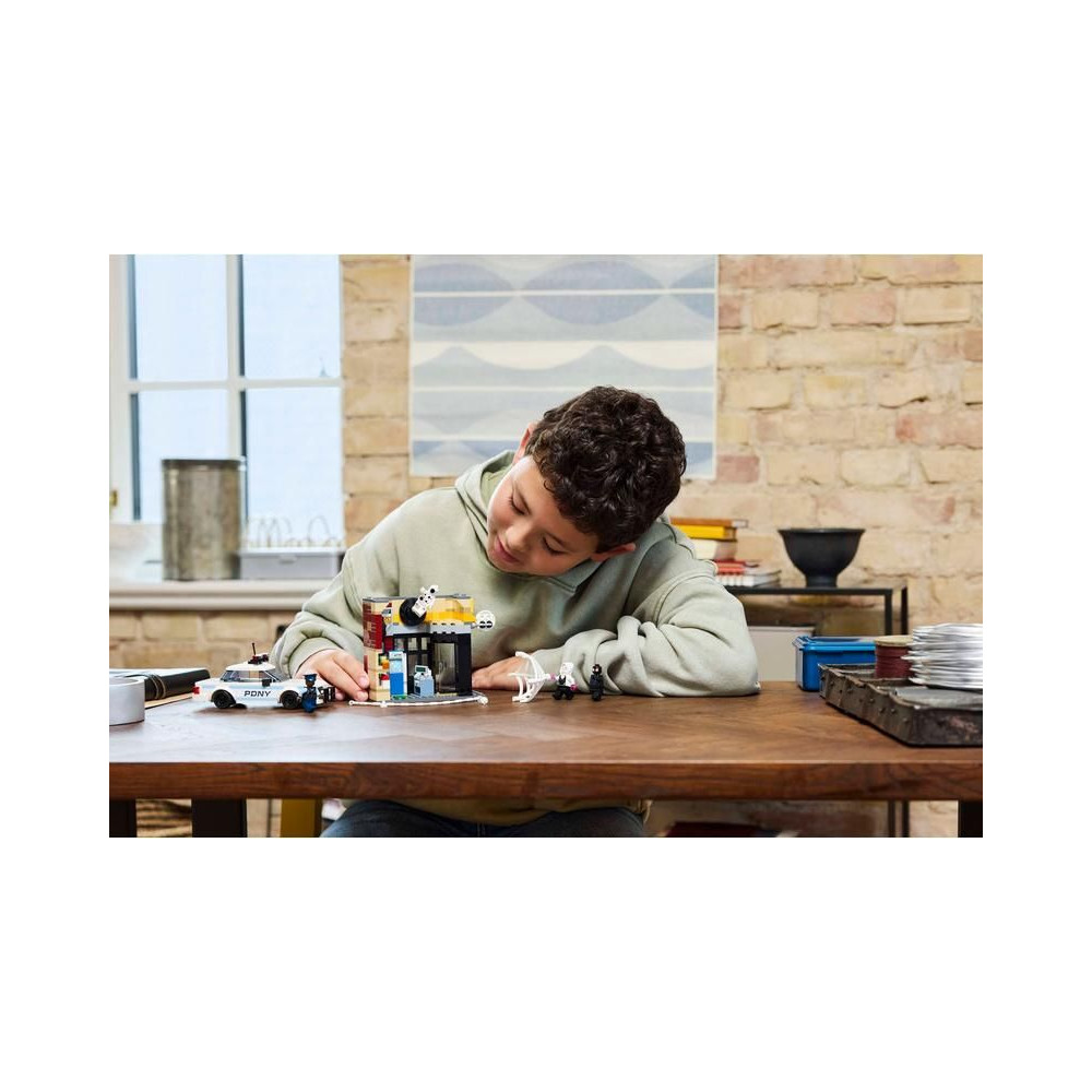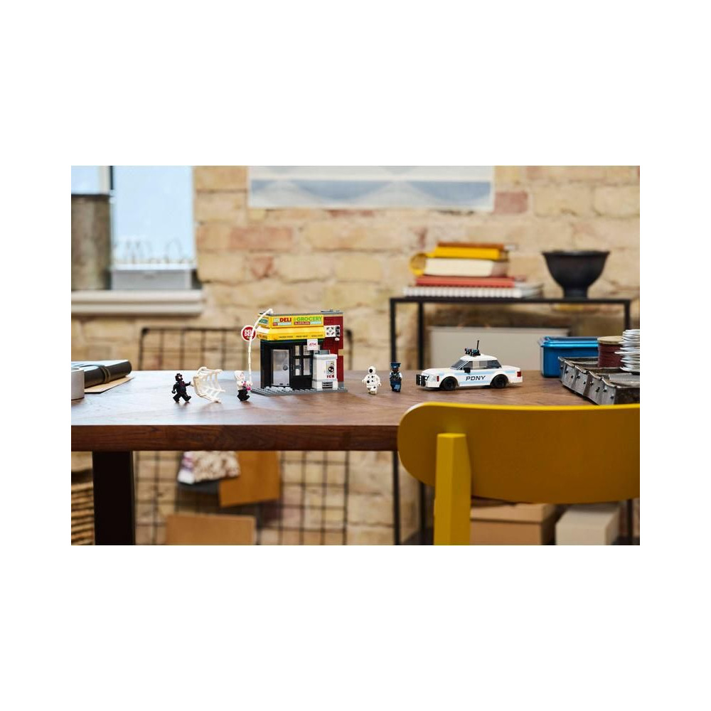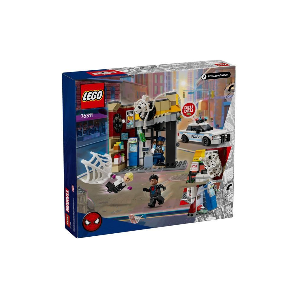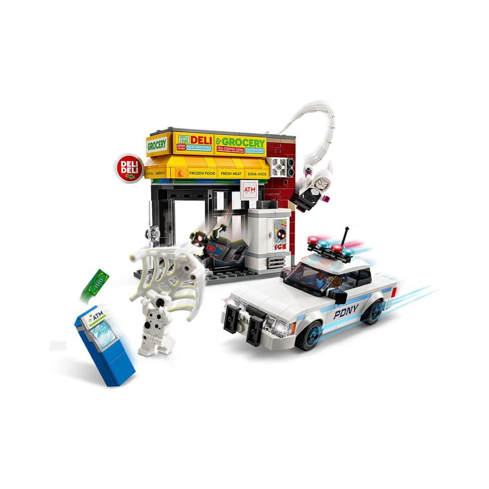 A Pókember építőkészlet 4 minifigurát tartalmaz: Miles Morales-t, Flekót, Gwen Stacy-t és Jefferson tisztet. Az önkiszolgáló fal robbanó funkcióval rendelkezik, amely lehetővé teszi az ATM eltávolítását. A kiegészítők között találsz egy hosszú, rugalmas hálókötelet és egy rugalmas hálót, amibe egy minifigura is belefér. A rendőrautó kinyitható és 2 minifigura helyezhető bele. Az építők 3D-ben nagyíthatják és forgathatják a modelleket, és nyomon követhetik a haladásukat a szórakoztató és intuitív LEGO Builder alkalmazás segítségével a még több digitális szórakozás érdekében.