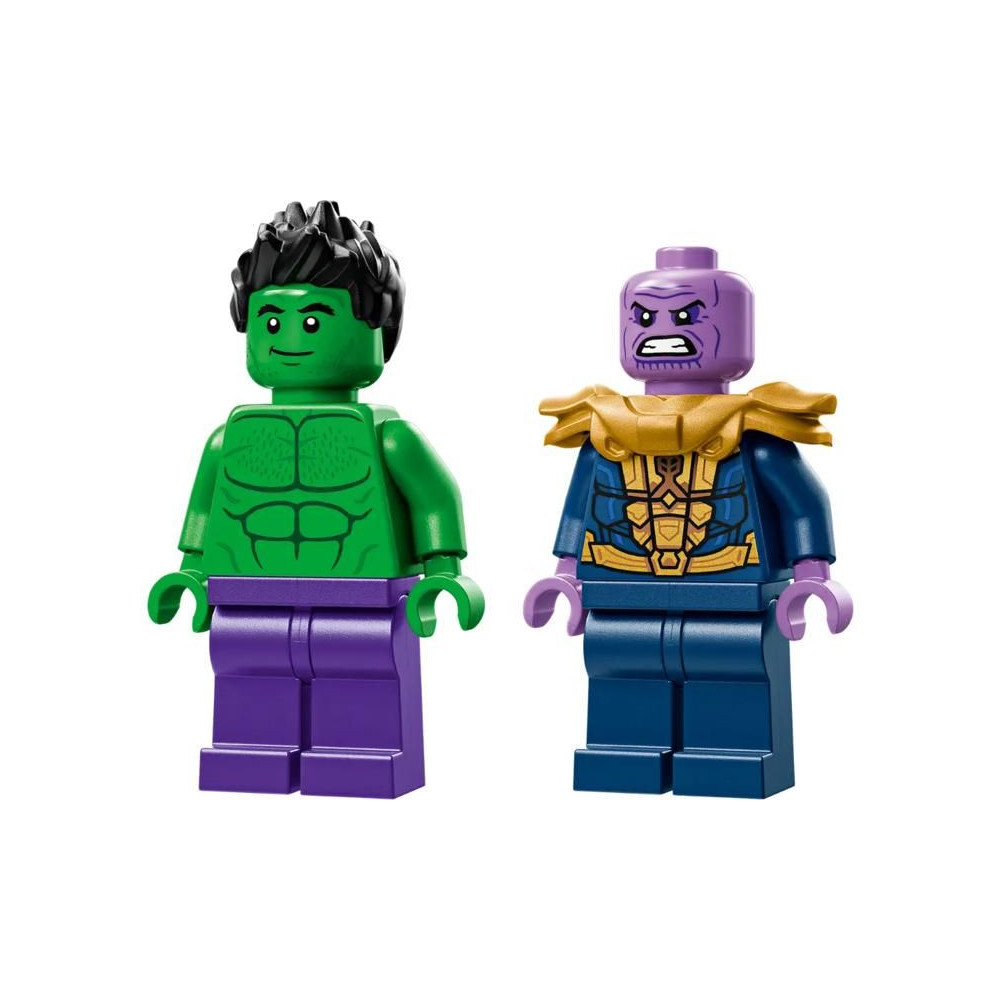- LEGO® ǀ Marvel Minifigurák – Az építőkészlet tartalmaz egy Hulk minifigurát levehető sisakkal és egy Thanos minifigurát Tesseracttal és Végtelen Kesztyűvel