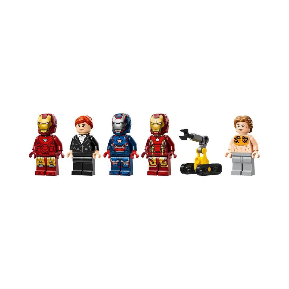Ez a LEGO ǀ Marvel építőkészlet 3 páncélkészletet és 3 Vasember páncél minifigurát tartalmaz: MK1, MK43 és MK6. Az építőkészletet Pepper Potts minifigurái és Aldrich Killian gonosztevő, egy megépíthető Dum-E robot és egy nagyméretű Igor Iron Man MK3 robotpáncél teszi teljessé mozgatható karokkal és lábakkal, valamint egy minifigura számára kialakított pilótafülkével. A készlet további jellemzői közé tartozik egy karbantartó platform 2 robotkarral és egy nagyméretű szkennelő eszközzel. Van egy tűzoltó készülék, 2 tűz alkatrész és 2 kilövő az akcióharcokhoz. Még több digitális szórakozásért az építők 3D-ben nagyíthatják és forgathatják a modelleket, és nyomon követhetik a haladásukat a szórakoztató és intuitív LEGO Builder alkalmazás segítségével. A modell 379 darabot tartalmaz.