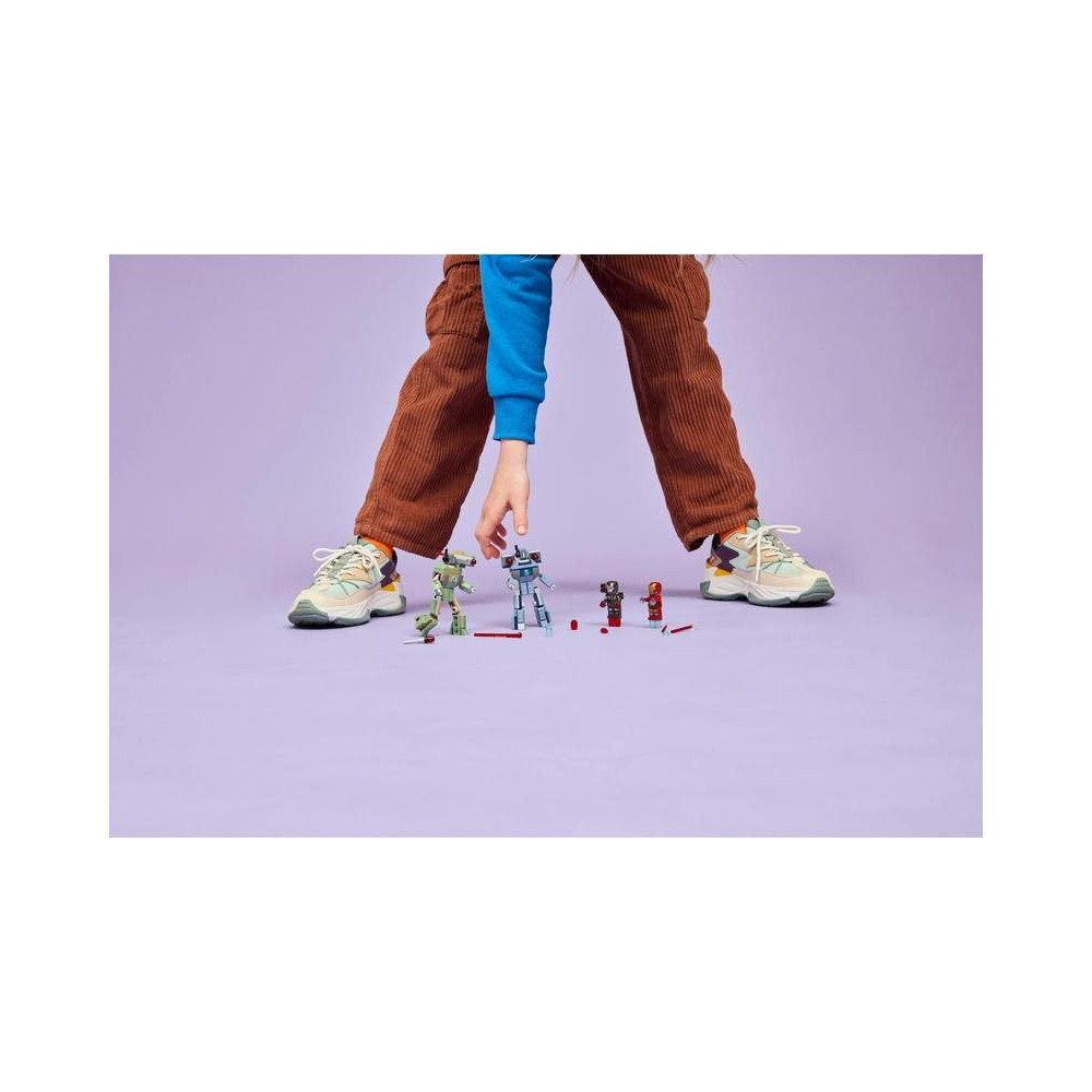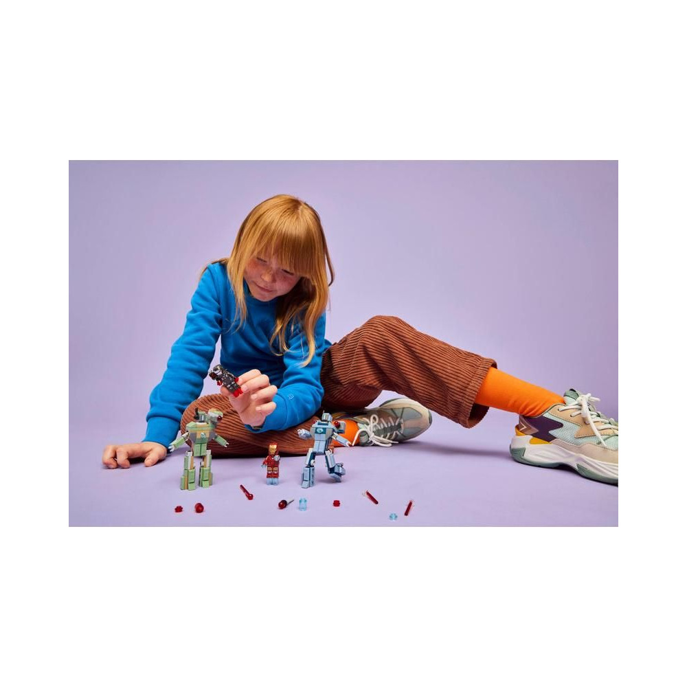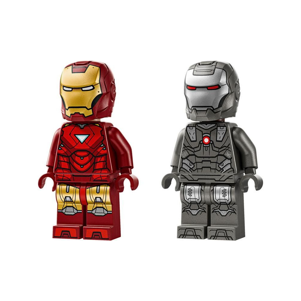 - LEGO® ǀ Marvel minifigurák – Tartalmaz egy Vasember minifigurát kék kar- és lábvetőkkel és lézerfegyverekkel, valamint egy Hadigép minifigurát piros kar- és lábvetőkkel és egy kilövővel