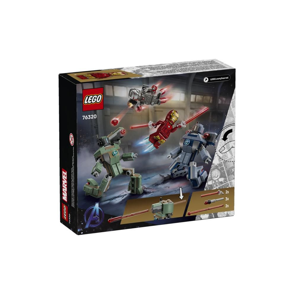 Éld át újra a Marvel Vasember 2 című film epikus csatajeleneteit ezzel az építőkészlettel. Tartalmazza Vasember és Hadgép minifigurákat, valamint 2 megépíthető Kalapács Drónt. A drónok teljesen mozgathatók, így a gyerekek elhelyezhetik őket, és dinamikus, valósághű játékban lehet részük. A zöld Kalapács Drón vállán egy rugós kilövő található. A kék Kalapács Drón mindkét karján egy-egy gombnyomással aktiválható kilövő található. A Hadgép karjain és lábain piros lézerpisztolyok, a vállán pedig egy-egy kilövő található. Vasember kezein és lábain kék lézerpisztolyok vannak, és lézersugár formájában tudja megtartani az alkatrészeket. Még több digitális szórakozásért az építők 3D-ben nagyíthatják és forgathatják a modelleket, és az intuitív LEGO Builder alkalmazás segítségével nyomon követhetik az építési folyamatot. A készlet 204 alkatrészt tartalmaz.
