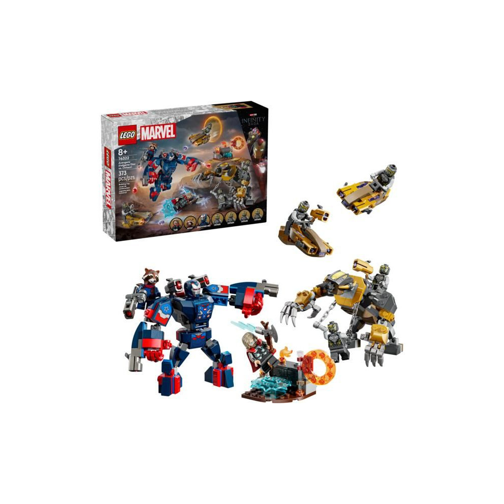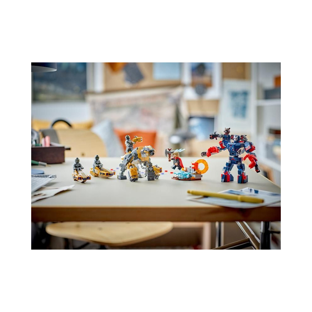 - LEGO® ǀ Marvel minifigurák – 7 minifigurát tartalmaz: Vaspatrióta MK2, Rakéta nagy lézerpuskával, Thor Vihartörővel és 4 Chitauri, melyek közül 2 arany lézerpuskával rendelkezik