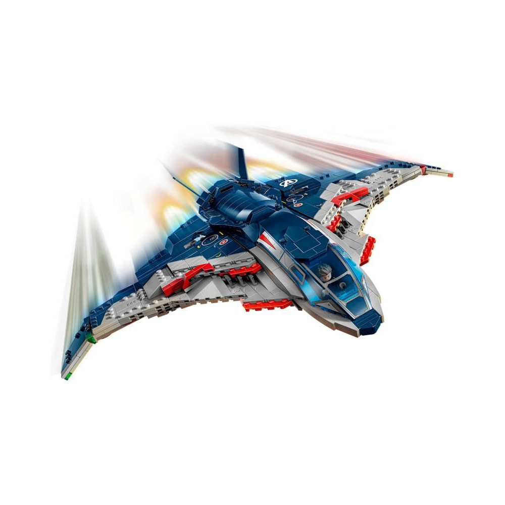 - Quinjet Avengers - A repülőgép nyitható pilótafülkével, elöl 2 kilövővel, fegyvertároló rekesszel és nyitható hátsó ajtóval rendelkezik, hogy a gyerekek ki- és beszállhassanak a motorkerékpárral.