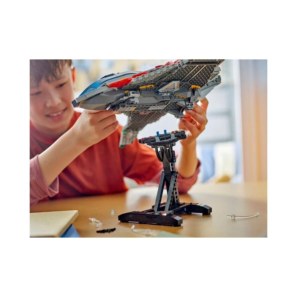 - 1131 alkatrészből álló gyermekkészlet - A Quinjet vadászgép kész modellje több mint 28 cm magas, 30 cm hosszú és 45 cm széles.