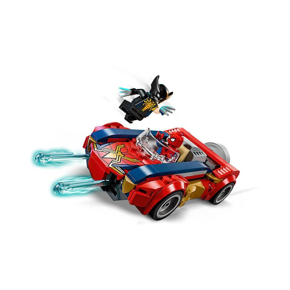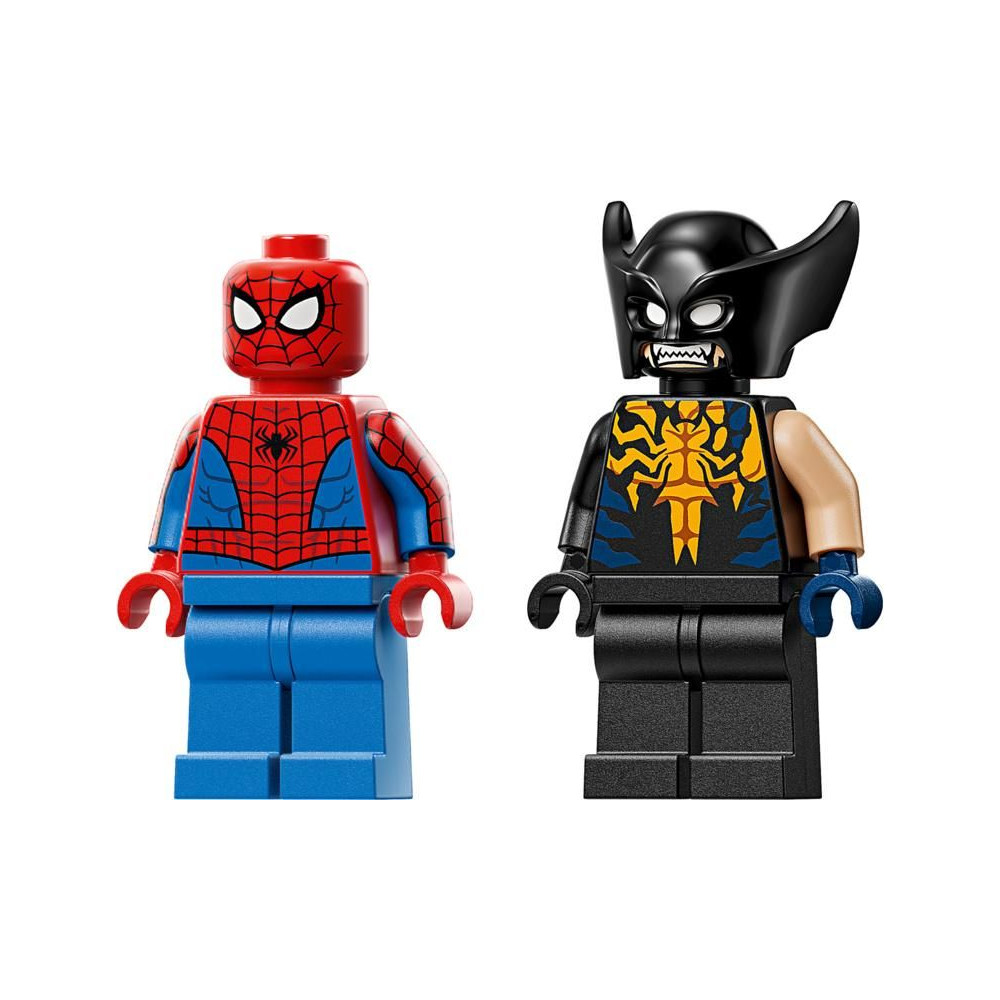 Ez az első LEGO ǀ Marvel készlet, amelyben egy megmérgezett Rozsomák minifigura található. Akciócsata zajlik egy megépíthető szuperhős játékkal Pókember autójában és körülötte. A hátsó részben egy elsütőszerkezetet találsz, amely 2 rugós kilövőt aktivál az elülső részben.