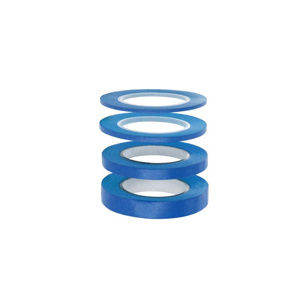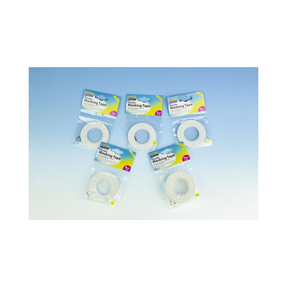 4 darabos készlet Modelcraft rugalmas maszkolószalag 1, 2, 3 és 6 mm szélességben és 18 m hosszúságban. íves vonalakba ragasztható festéshez és permetezéshez, Airbrush-hoz, stb. A szalag pontosan tapad, nem gyűrődik és könnyen eltávolítható, nem hagy ragasztómaradványt.