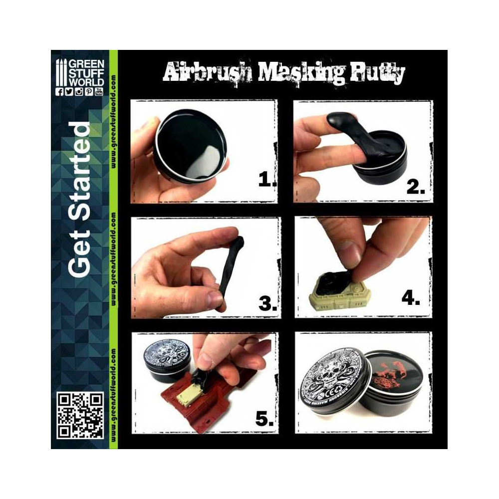 Airbrush Maskovací tmel sa ľahko prispôsobí všetkým povrchom a iným detailom na akomkoľvek modeli. Bol špeciálne navrhnutý tak, aby na povrchu nezanechával žiadne zvyšky, veľmi ľahko sa odstraňuje, neobsahuje mastnotu a nemôže vyschnúť. Ideálny maskovací materiál na ochranu plôch pred farbou a na jednoduché vytváranie maskovacích vzorov.