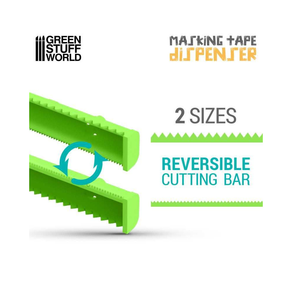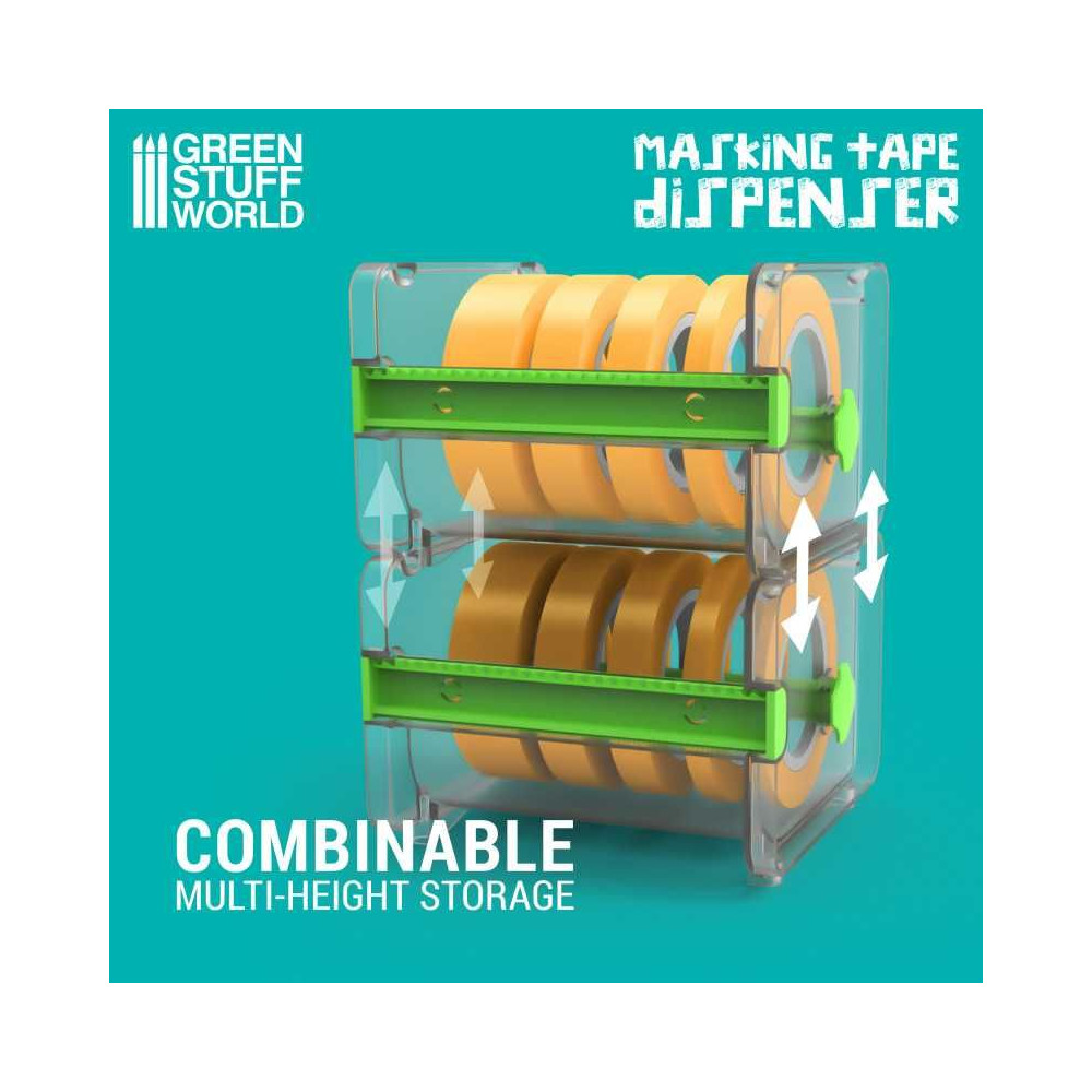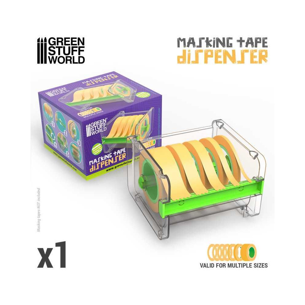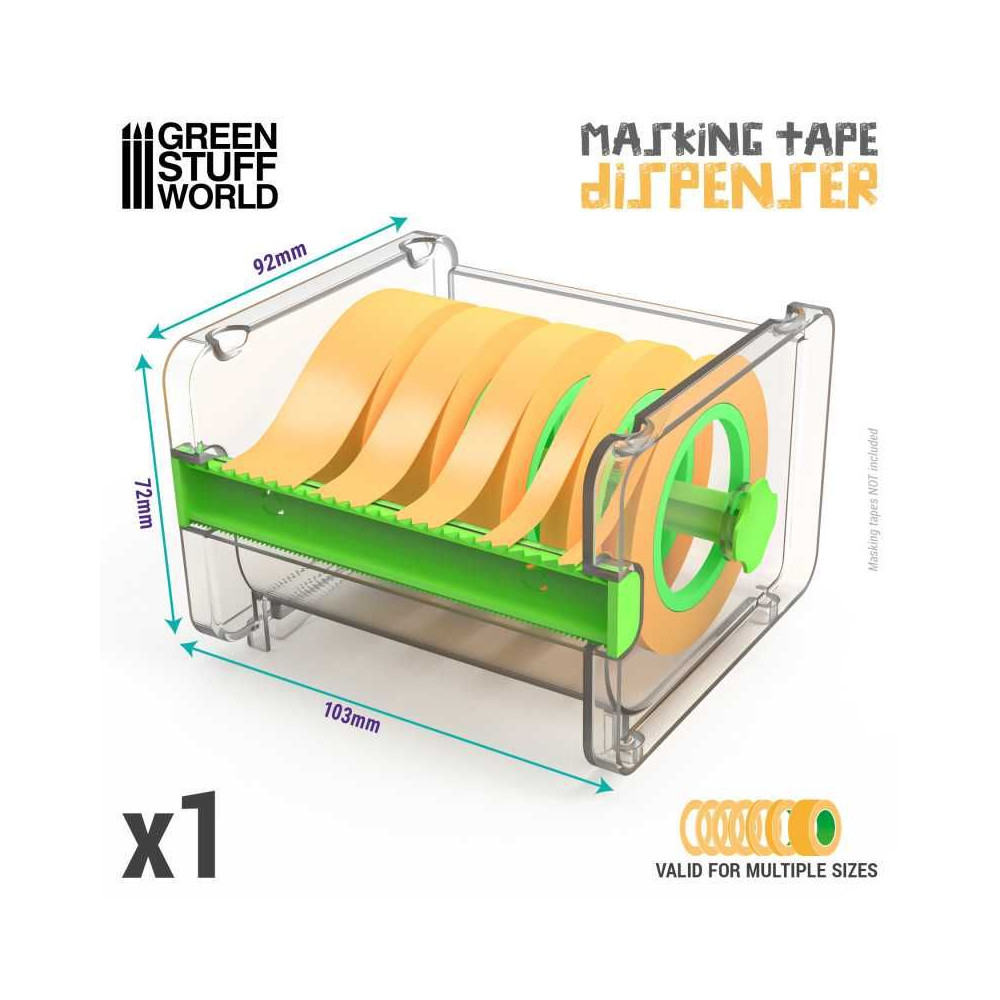 Tento základný dávkovač na maskovacie pásky bol navrhnutý na použitie s hobby maskovacími páskami rôznych šírok s priehľadnou štruktúrou, ktorá používateľom umožňuje ľahko sledovať zostávajúcu pásku na rolke bez toho, aby museli otvárať dávkovač. Jeho otočný vnútorný držiak umožňuje plynulé otáčanie a odvíjanie pásky, čím zabraňuje zamotávaniu a zabezpečuje ľahký prístup k požadovanej dĺžke. Obsahuje aj obojstrannú reznú lištu, ktorá používateľom umožňuje ľahké strihanie pásky.