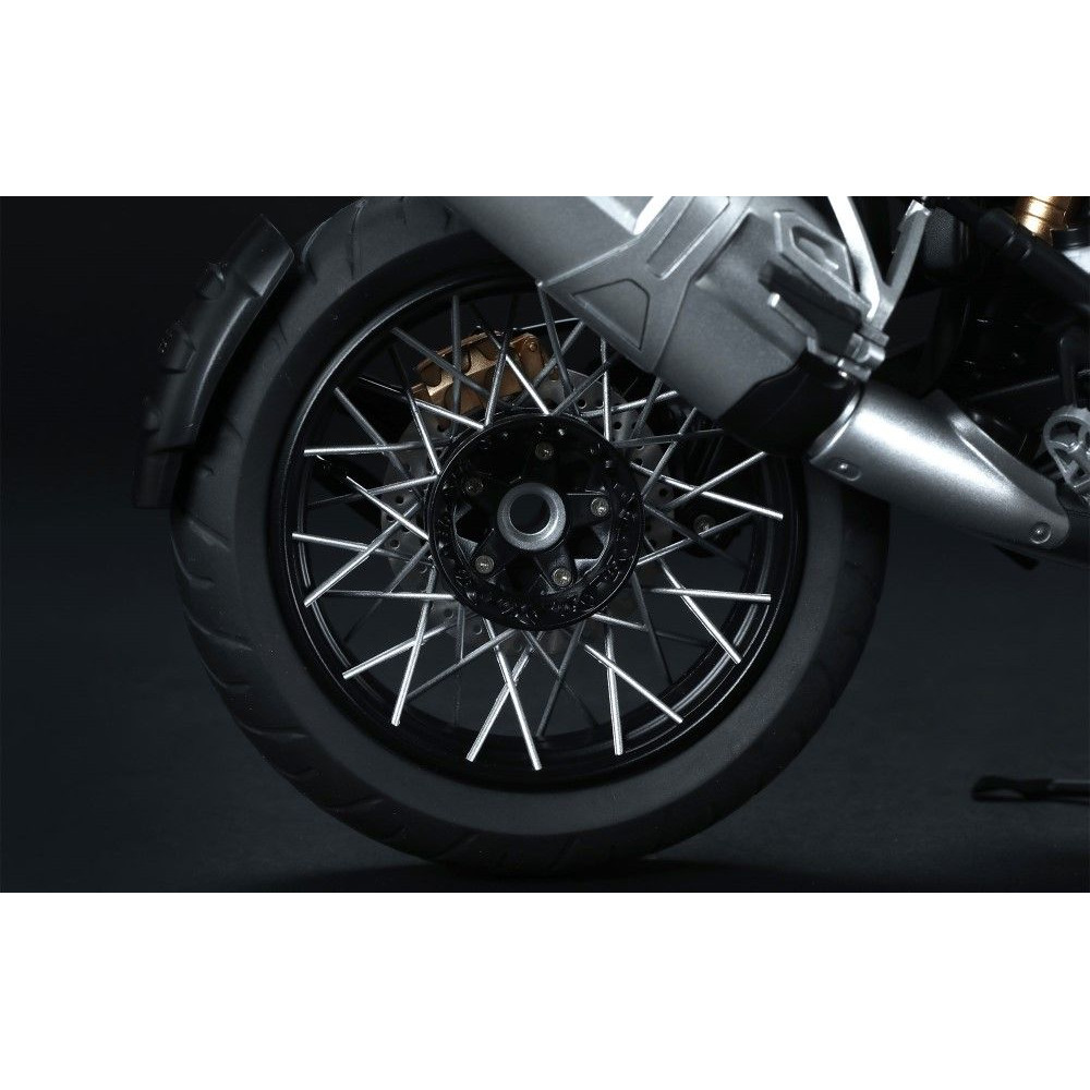 A MENG-Model BMW R 1250 GS ADV 1:9 egy részletesen kidolgozott, nagyméretű BMW motorkerékpár-építőkészlet. A modell valósághű anyagokból, mozgatható felfüggesztéssel, kiváló minőségű matricákkal és magas szintű részletességgel készült, így igényes modellezők és gyűjtők számára is megfelelő.