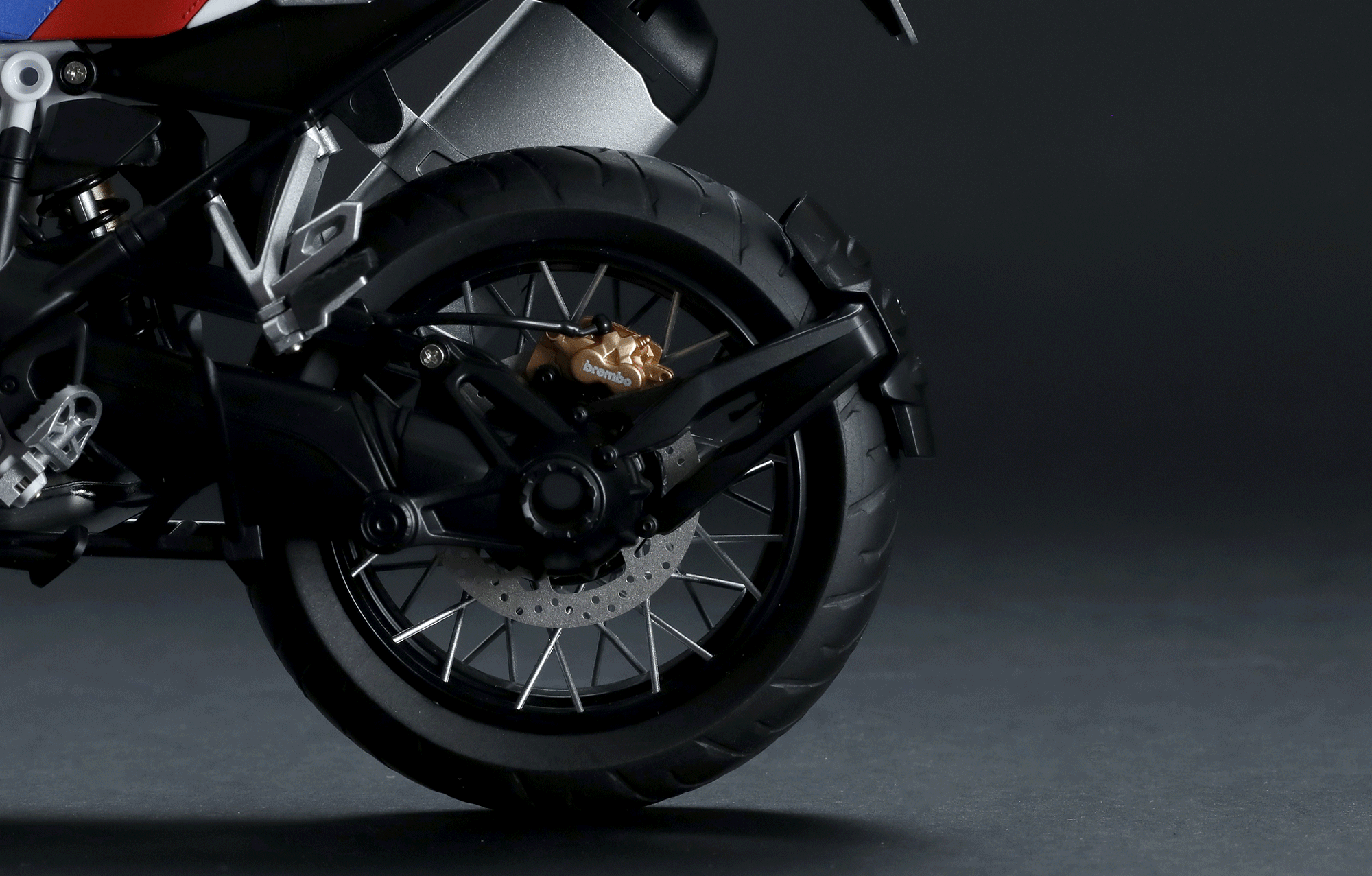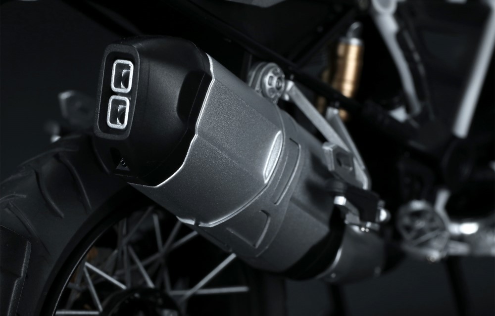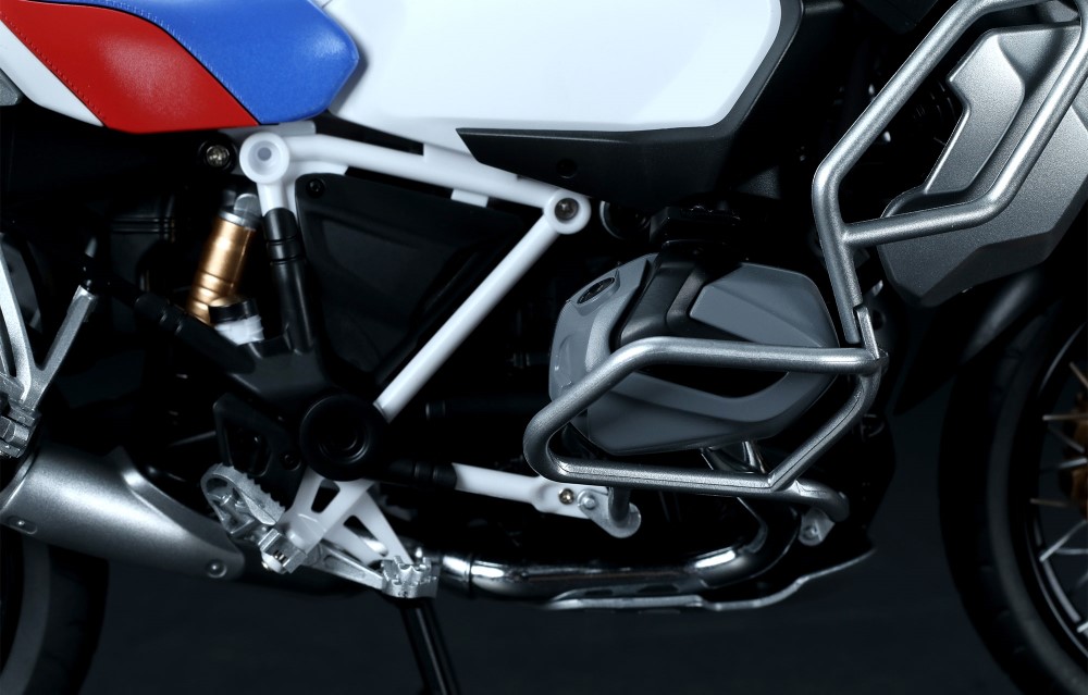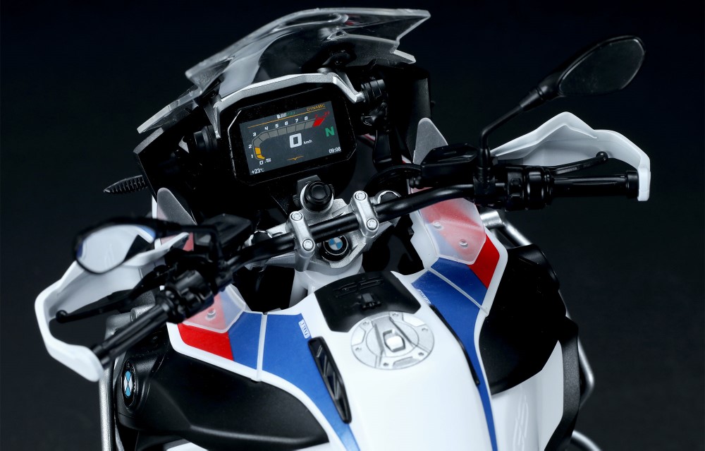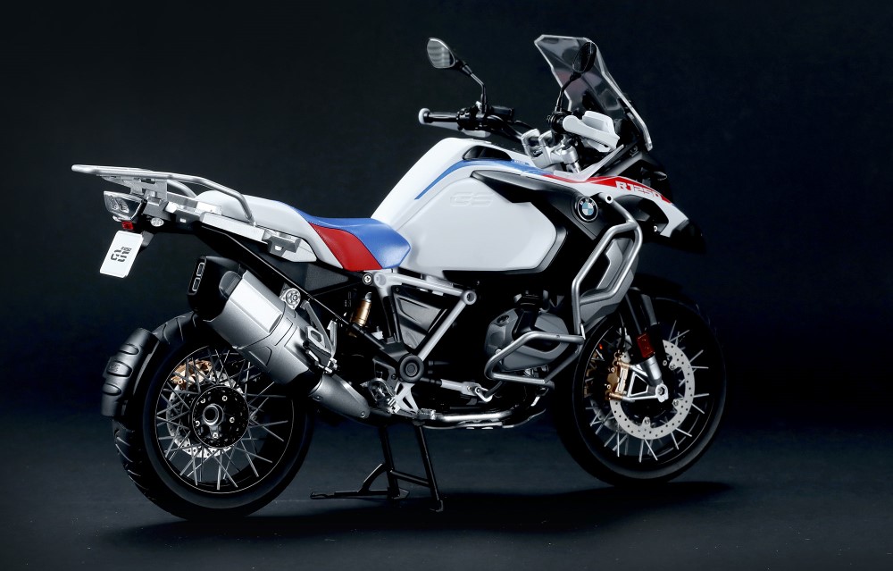 A modell hűen reprodukálja a BMW R 1250 GS ADV erőteljes megjelenését és fényezését.