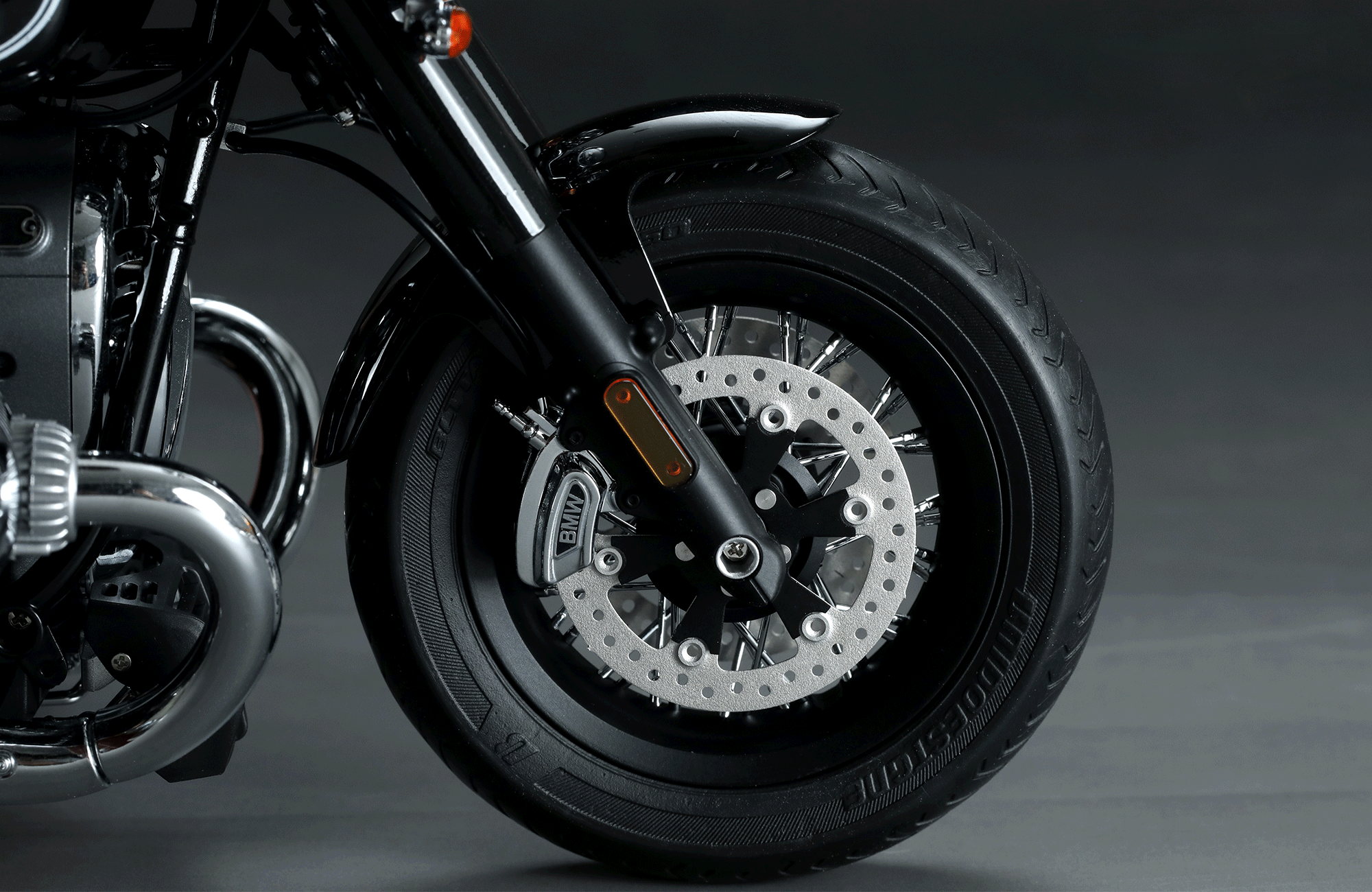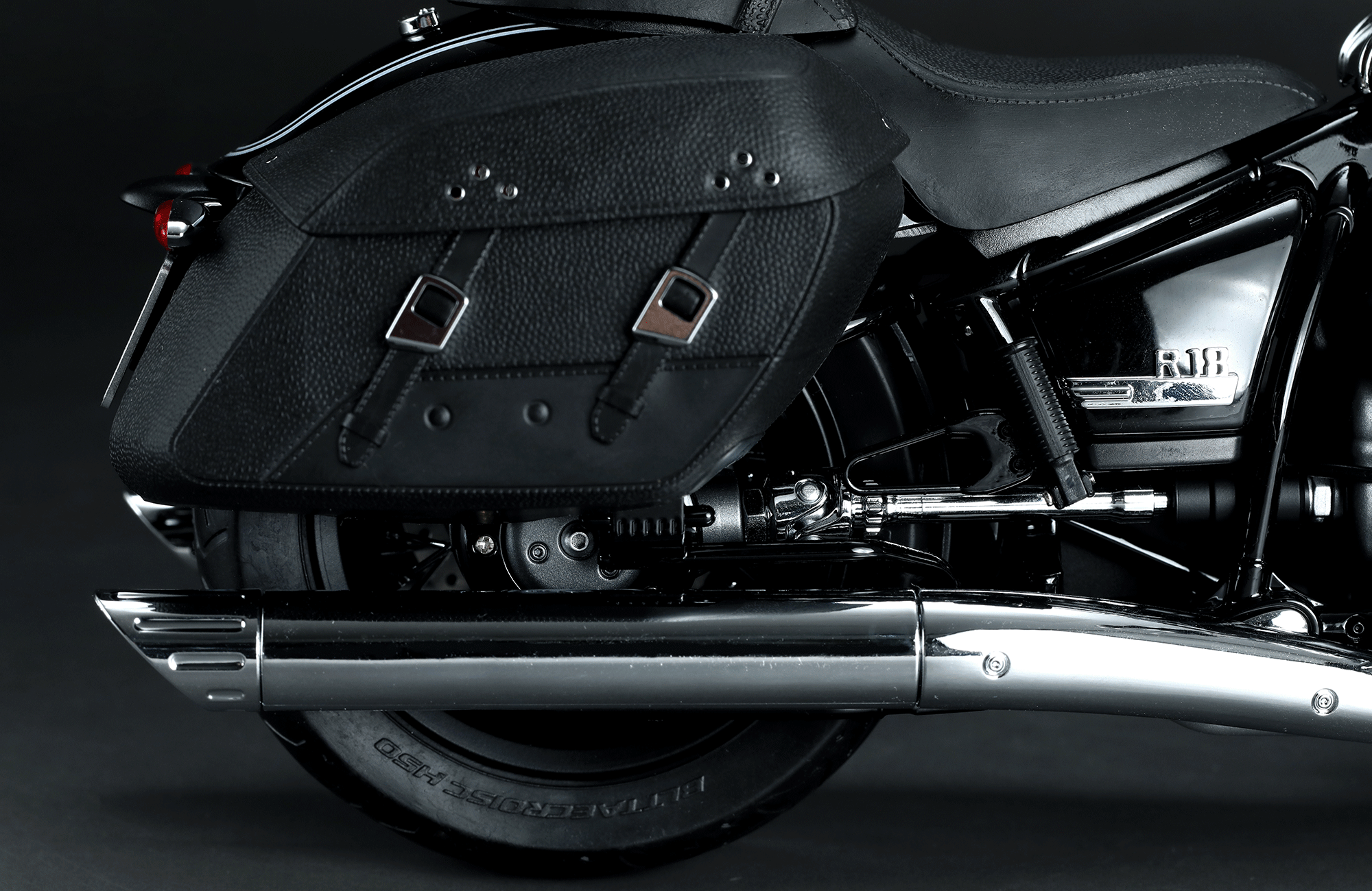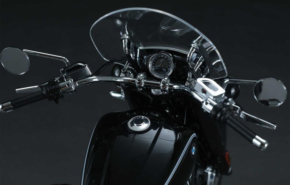 Az előre fényezett BMW R 18 Classic modell metál fekete festékkel hűen reprodukálja az igazi motorkerékpár megjelenését.
