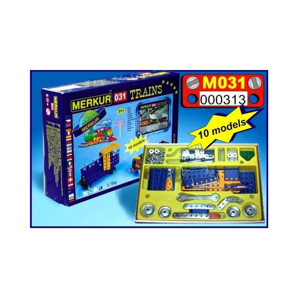 A Merkur M031 vasúti építőkészlet egy 211 darabos fém építő készlet, amely elemeiből a legkülönbözőbb vasúti kocsik építhetők meg.