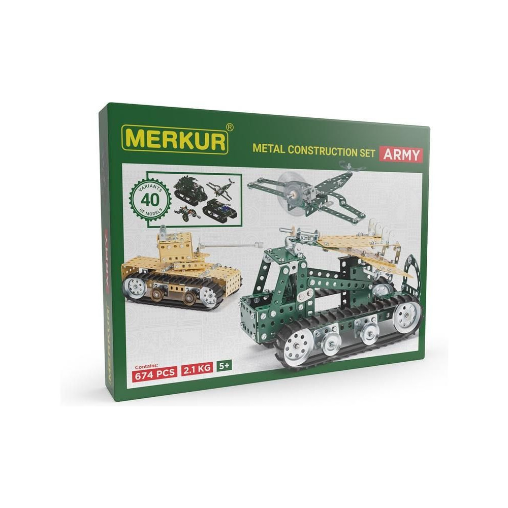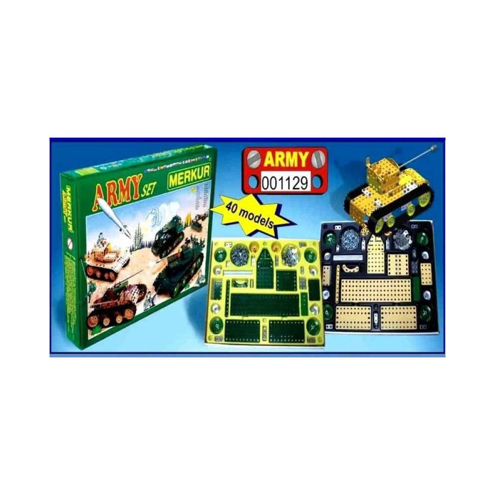 A Merkur Army építőkészlet egy kiváló minőségű, fém alapanyagú fejlesztő játék.Alkatrészeiből két hadsereget lehet felépíteni, amiket színekkel különböztethetünk meg. Kiváló minőségű, fém alapanyagú játék, ami remek szórakozás fiúknak és a lányoknak egyaránt.