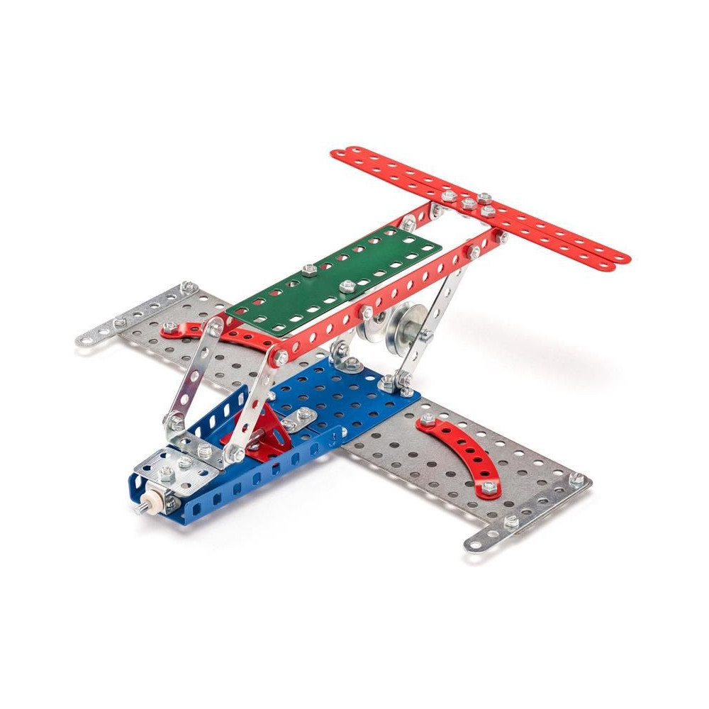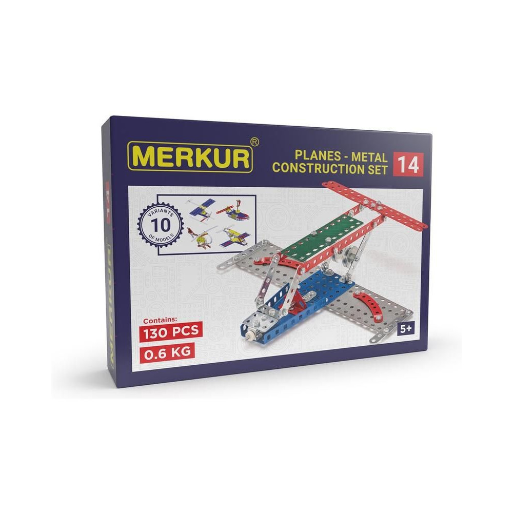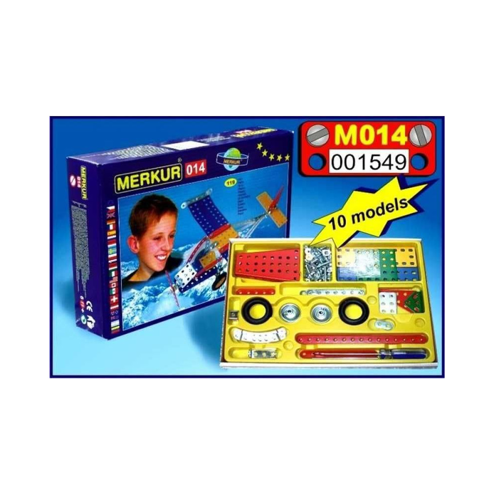 A Merkur M014 repülőgép építőkészletből 10 különféle jármű építhető össze. 119 db színes elemből vitorlázó repülő, egyszemélyes kisgép, nyitott helikopter és még sok más építhető. Alkatrészjegyzék a dobozra nyomtatva, szerelési segédlet a dobozban található.