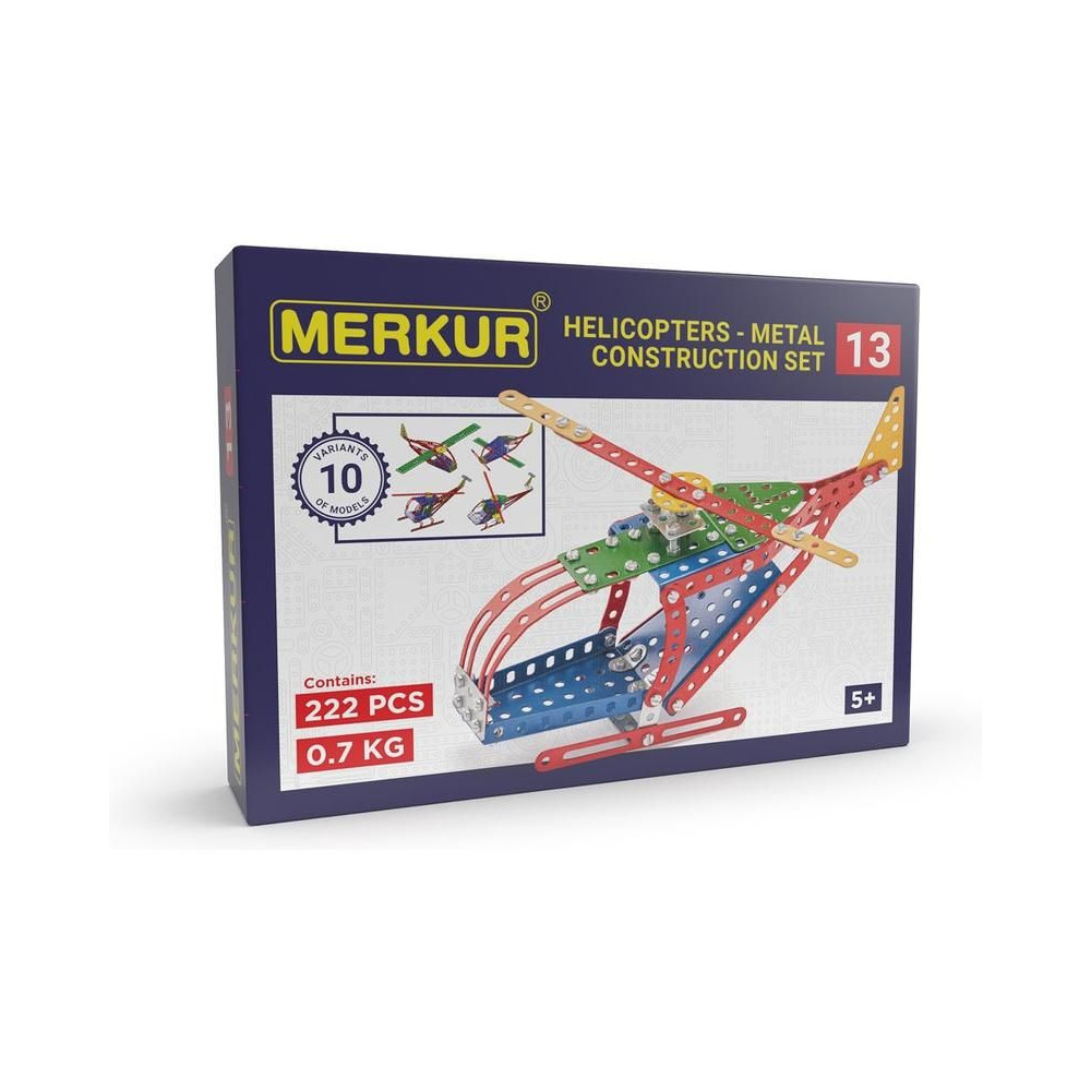 A Merkur 013 Helikopter készletből akár 10 különböző repüléstechnikai modellt is építhetsz. A kis építők saját elképzeléseik szerint építhetnek modellt, a fantáziának nincsenek határai. A készlet 222 darabot tartalmaz. A Merkúrral kezdő gyermekek számára is alkalmas. Az összerakott modellekkel lehet játszani, nagyon tartósak.